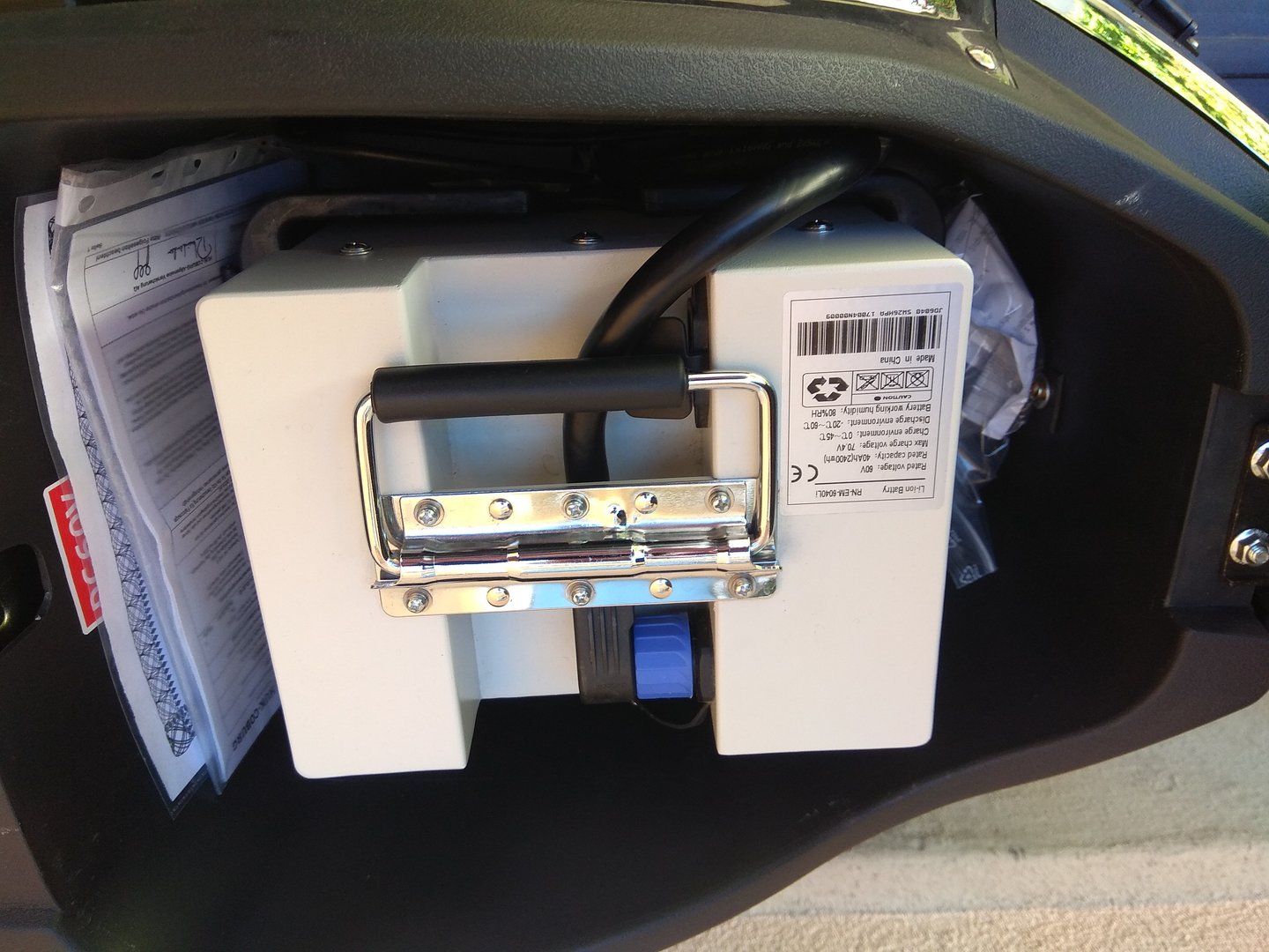 - Im "ok"-Zustand habe ich an allen zugaenglichen Kabeln (alle bis auf Ruecklicht und Lenker) am Roller gewackelt und gezogen, dies hat nichts ausgeloest.