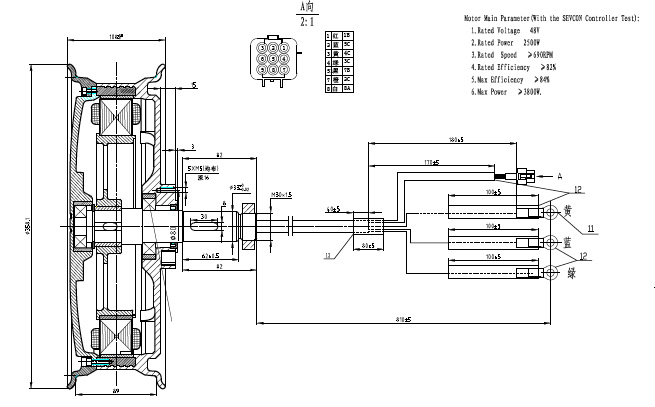 Nachdem alle Schrauben gelöst sind, das einseitige Felgenhorn sowie Mantel und Schlauch? abgenommen und die Paßfeder und Mutter entfernt ist, braucht man noch eine geschlitze Hülse um den Kabelstrang seitlich herausführen zu können. Dann sollte ein kräftiger Gummihammerschlag auf die Hülse ausreichen, damit die Achse mit Stator seitlich aus dem Rotor heraustreten. (Aufgrund der Magnete wird der Stator immer versuchen in den Stator zurück zu rutschen).