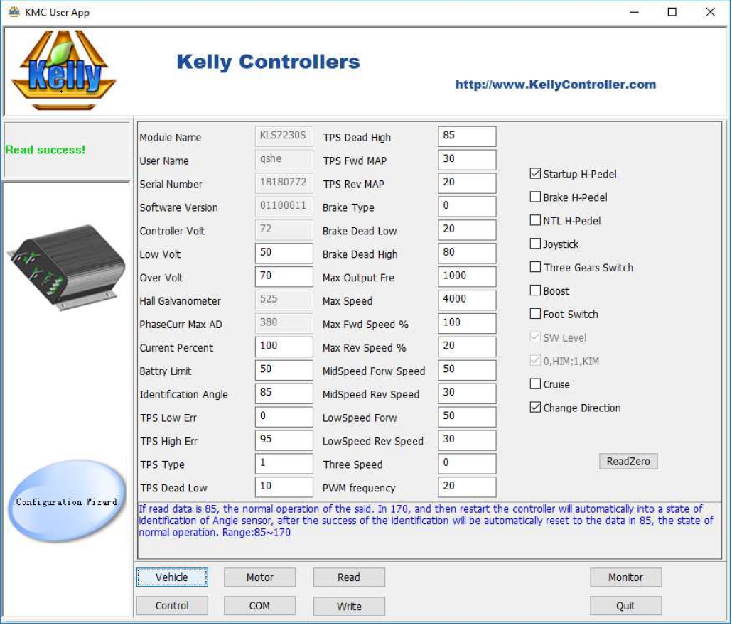(8)TPS Type: TPS Type, 1:0-5V 3-wire 0-5K pot,5K is normal,2K-20K can be used;2:Hall active throttle or pedal. Range: 1~2