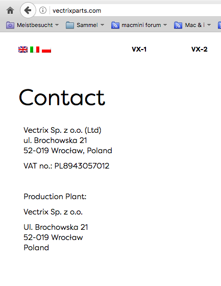 ... sind schon immer wenig auskunftsfreudig:Die aktuelle Webseite von Vectrixparts.com behauptet da was Anderes.
