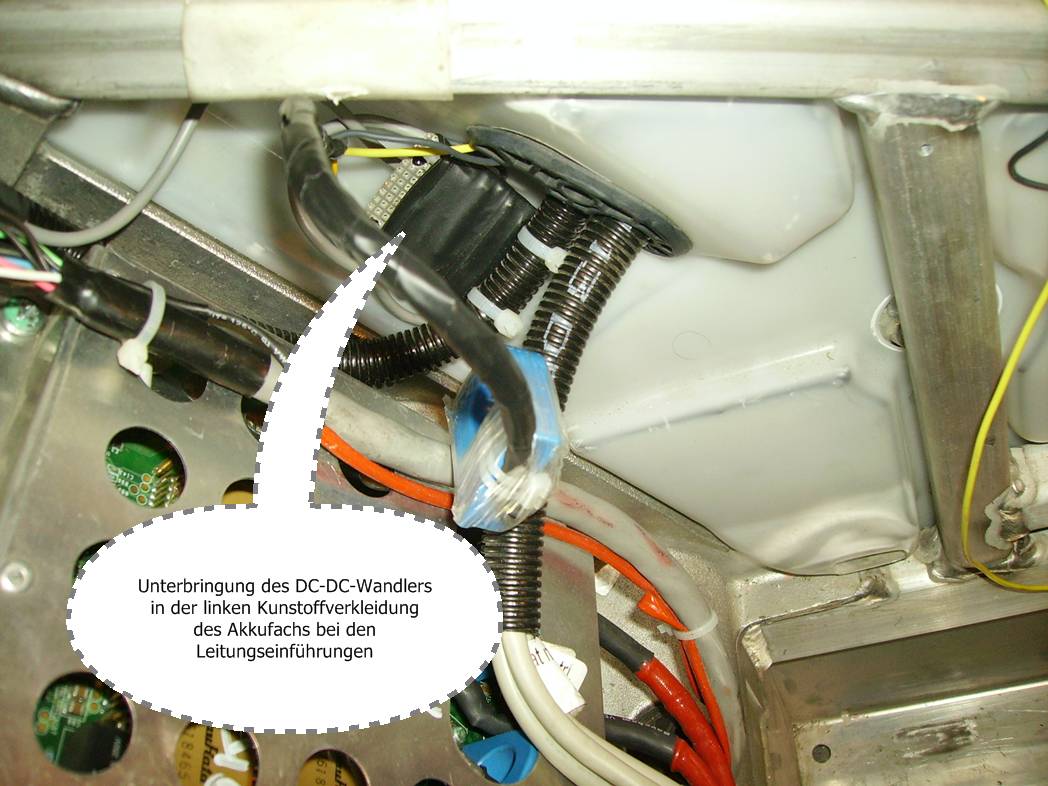 Das werde ich dann beim nächsten Service mal noch ändern, während des Ladens läuft aber der Batterie-Ventilator der wohl auch seine 12V-Spannung vom Controller bekommt. Somit muss ich noch die beiden 12V-Ausgänge des Controllers für AUX und Batterie-Ventilator über zwei Entkopplungsdioden auf den DC/DC-Wandler später zusammenführen.