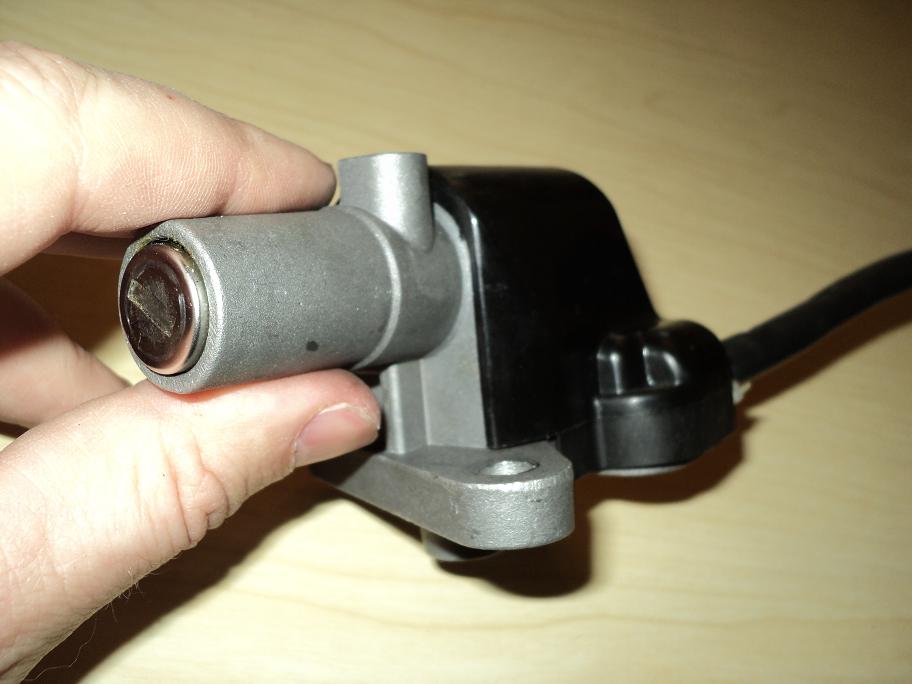 Zündschloß nach Abheben der schwarzen Plastik-Schutzkappe über dem Schalter (dieser ist ebenfalls schwarz):