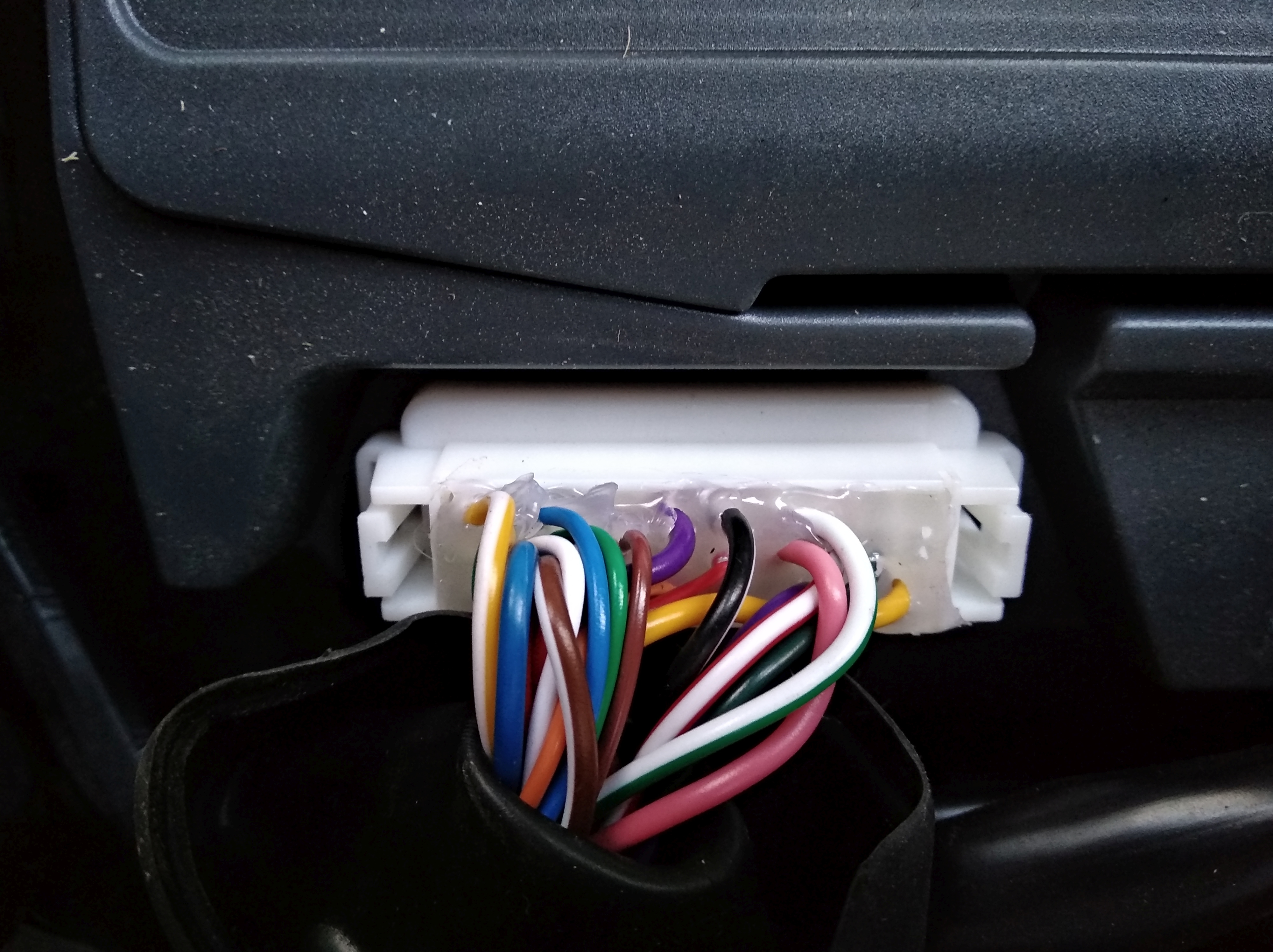 Der DC/DC Wandler auf 12V sitzt beim Lenkradschloß.