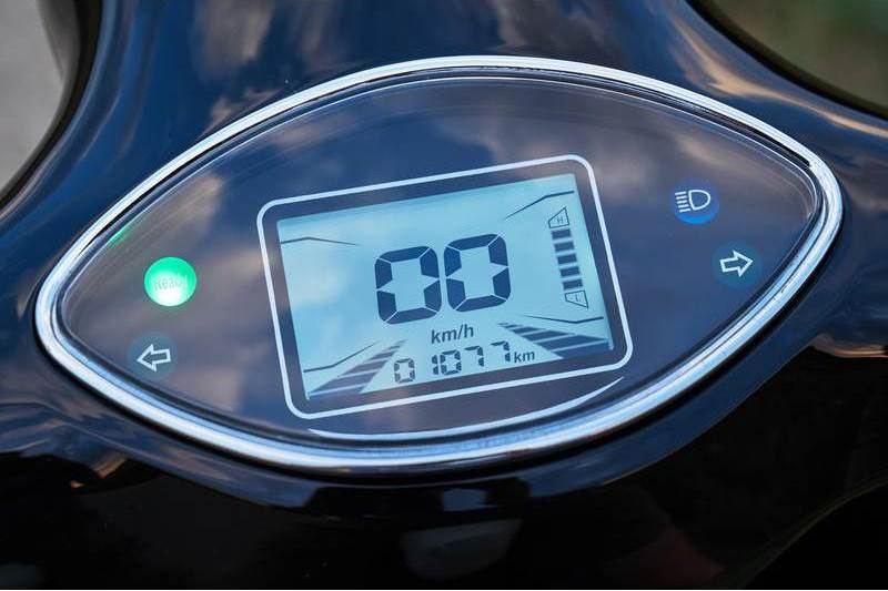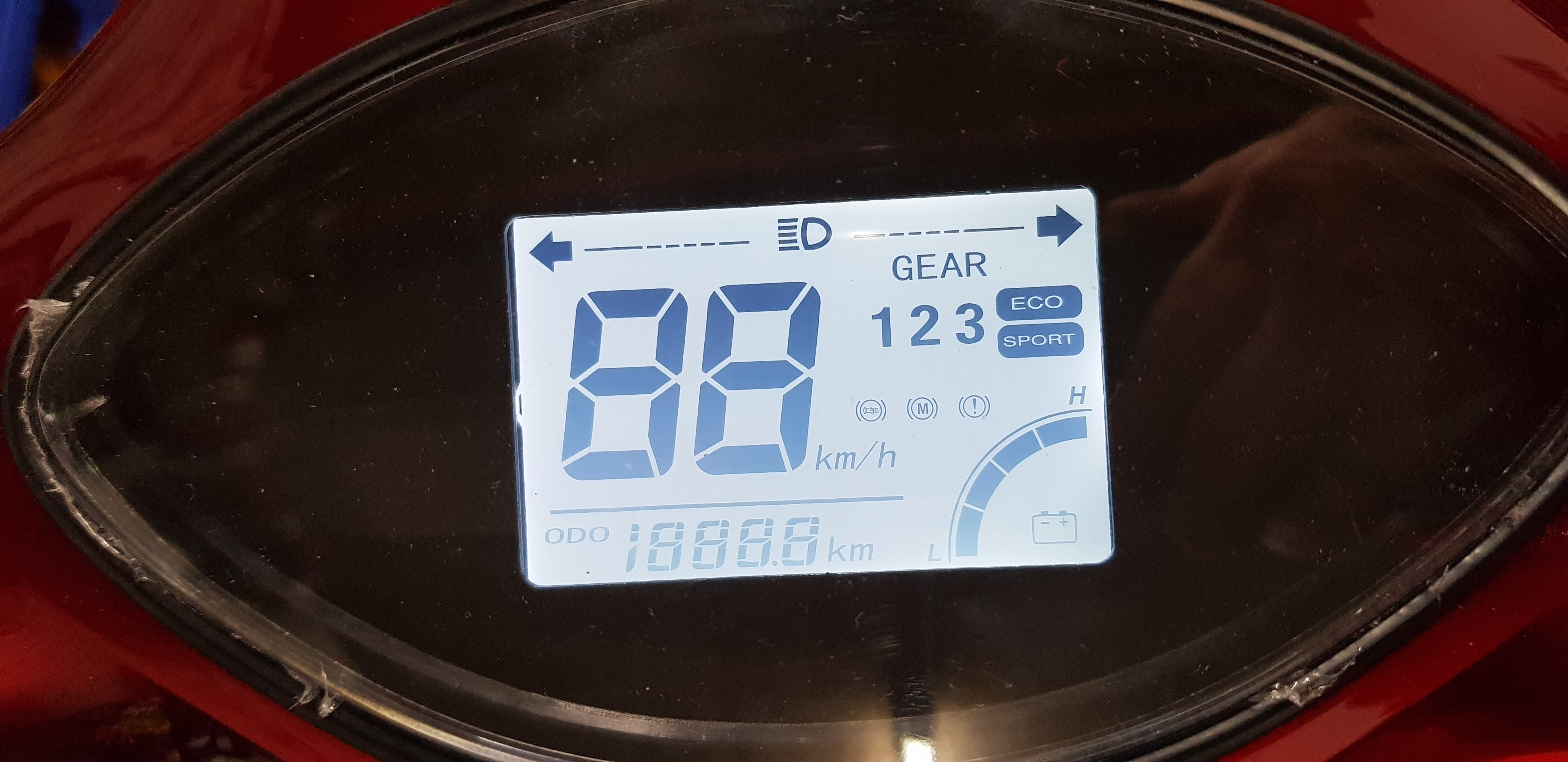 In der letzten Zeit wurde ja viel über diverse nicht funktionierende Ausstattungsvarianten berichtet. Da ich noch kein Kennzeichen habe, bin ich bislang nur durch den Garten gekurvt. Dabei lässt sich die (eventuell) vorhandene Rekuperation nicht feststellen. Im Stand (auf dem Bock) scheint es nicht spürbar oder sichtbar. So aufgestellt bring der Roller im freien Lauf 58km/h auf die Anzeige. Dann macht sich allerdings eine recht (m.E.) starke Unwucht des Hinterrades bemerkbar. Ich hoffe, das wird auf der Straße nicht zu spüren sein. Im Übrigen, steht der Roller auf dem Seitenständer, ist der Motor blockiert. Die Hupe ist nur noch links zu bedienen. Rechts ist der Taster zwar noch vorhanden, mit einer seltsamen Symbolik, aber scheinbar ohne Funktion. Die Blinker geben ein akustisches Signal.