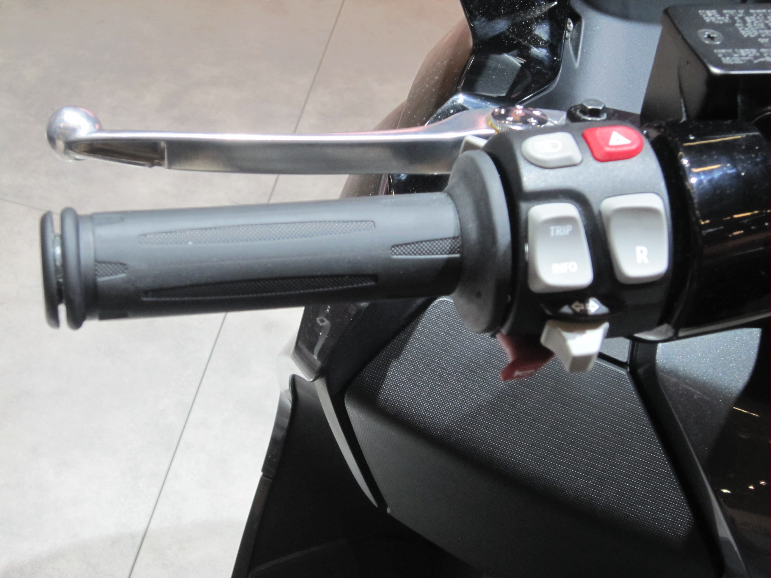 Wie man am rechten Handgriff sieht, ein Großelektroroller für Warmduscher, Handschuhverweigerer oder Winterfahrer (Heizgriffe serienmäßig)