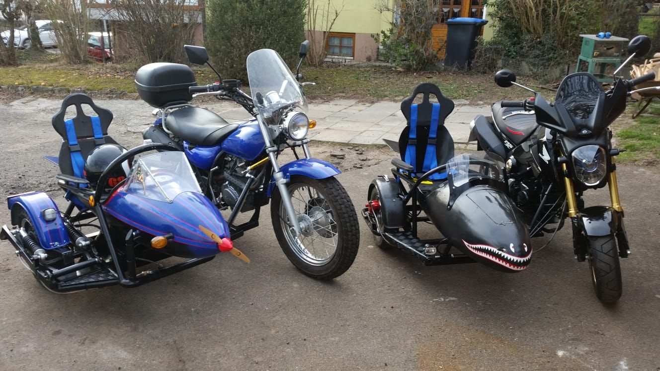 1. Man kann sicher mit einem 48V Radnabenmotor & Controller sowie einem 'Daumengas' den Seitenwagen antreiben - Anfahrhilfe. Nur der Radnabenmotor hat im ausgeschalteten Zustand, also ohne Daumengas, ein Schleppmoment bedingt durch die Magnete. Das Gespann wird zur Seite ziehen. Ein Hallgriff (Drehgriff) statt Daumengas wäre auch denkbar......