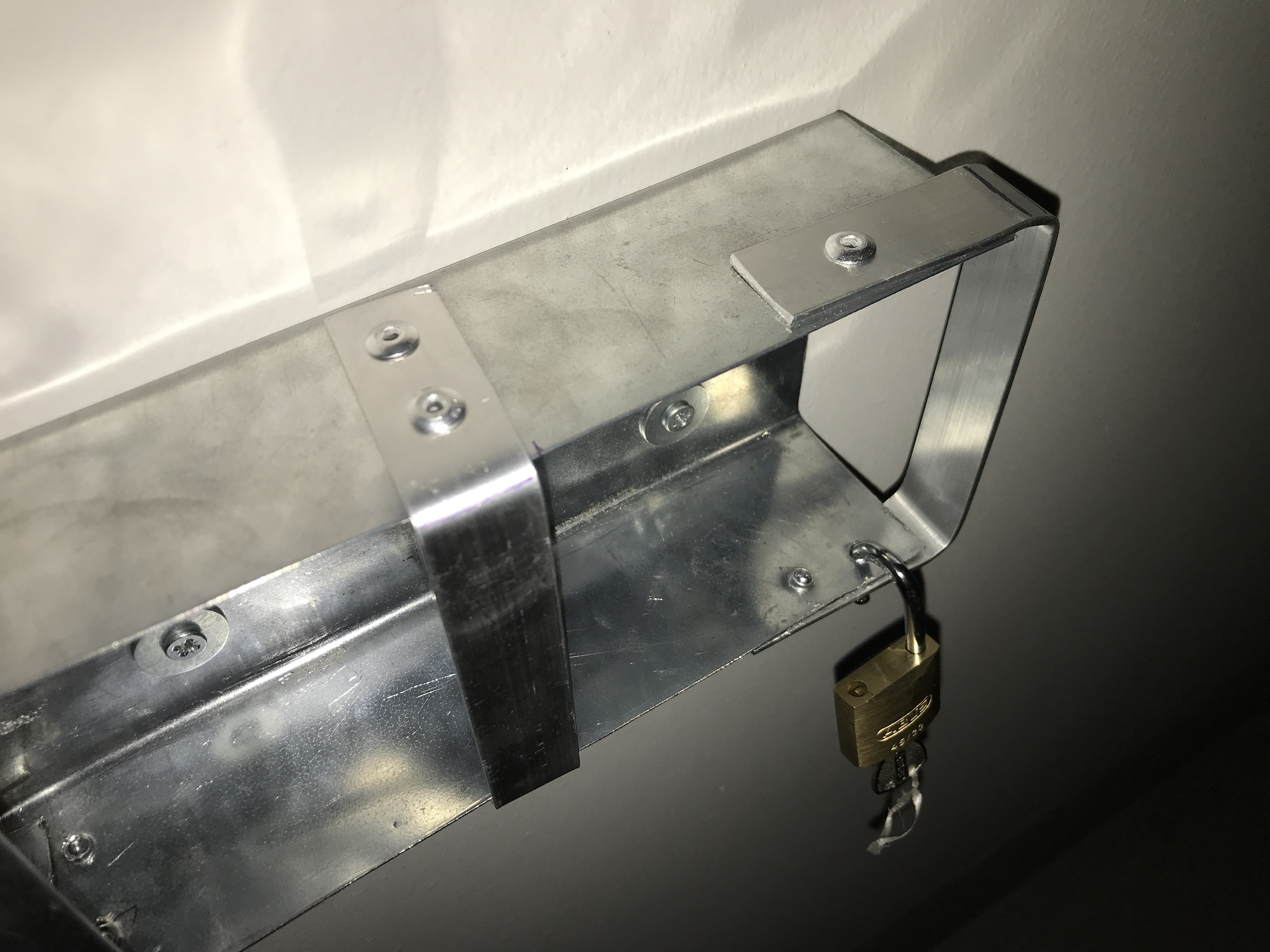 So, habe das ganze jetzt mit Blech umgesetzt. Keine Augenweide, dafür aber günstig und sicher gegen den Gelegenheitsdieb. So sieht es jetzt bei mir in der TG aus: