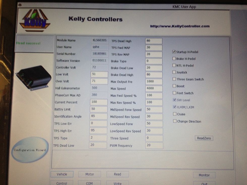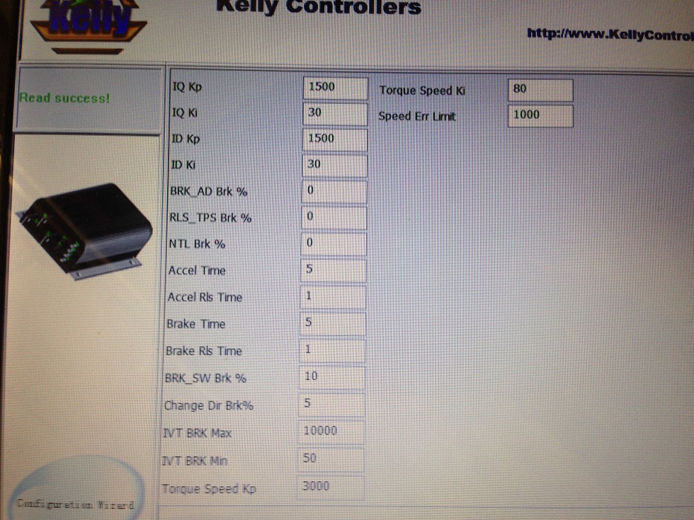 Da man ohne einen KLS Controller das Kelly Konfigurationsprogramm nicht starten kann ist nur raten angesagt. Und online gibt es die Bildschirmanzeige auch nicht wie bei den KEB und KBL Typen. Das macht eine Hilfe hier fast unendlich schwer.
