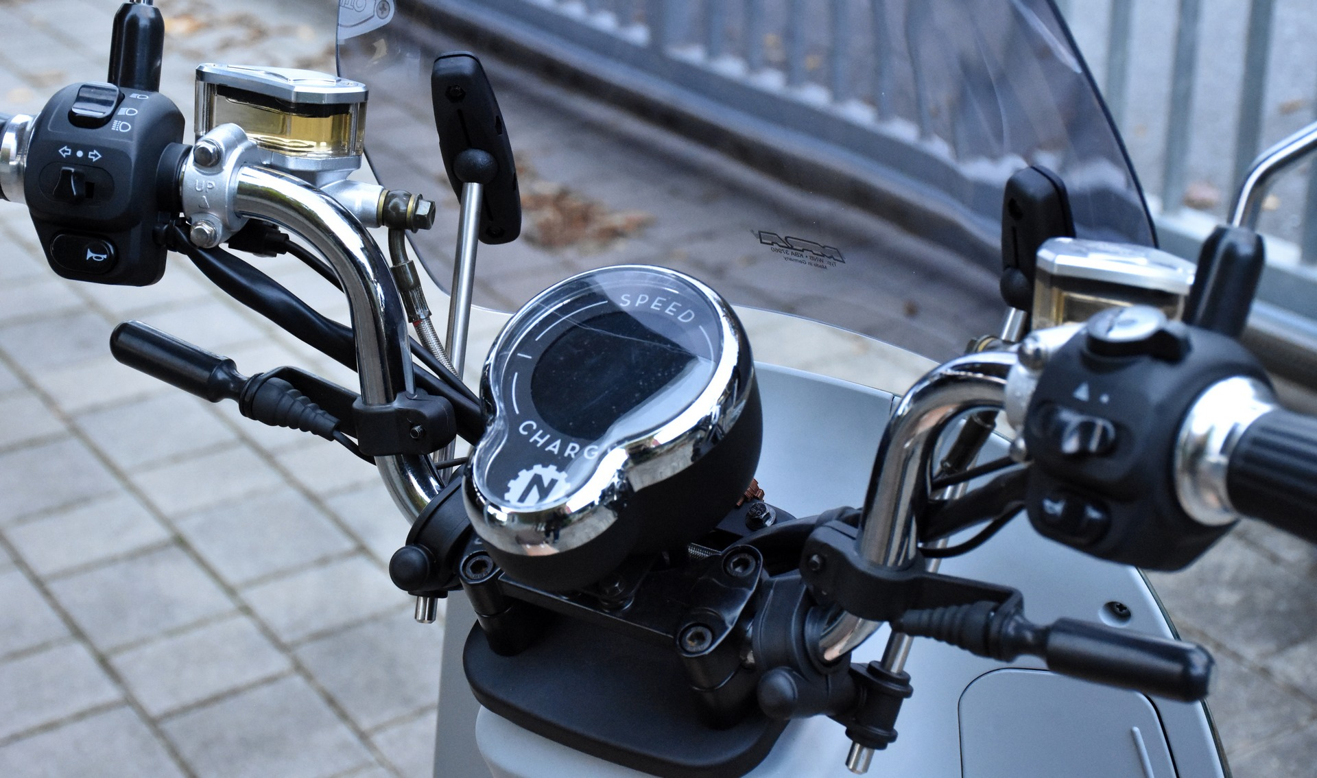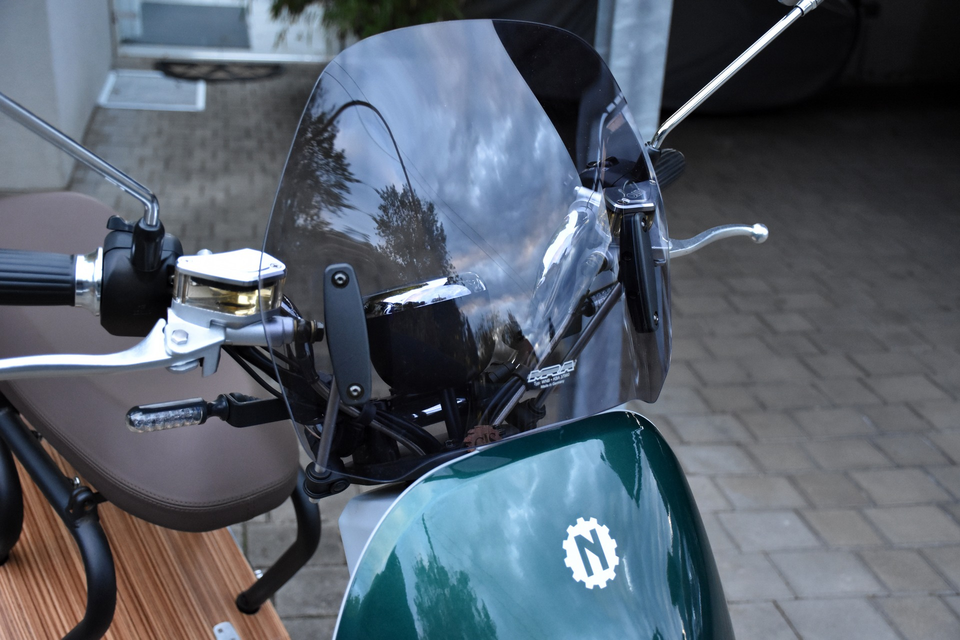 Das Windschild fügt sich recht harmonisch am NES ein und das fahren bei hohen Geschwindigkeiten ist deutlich angenehmer, da der Winddruck auf Oberkörper und Helm verringert wird.