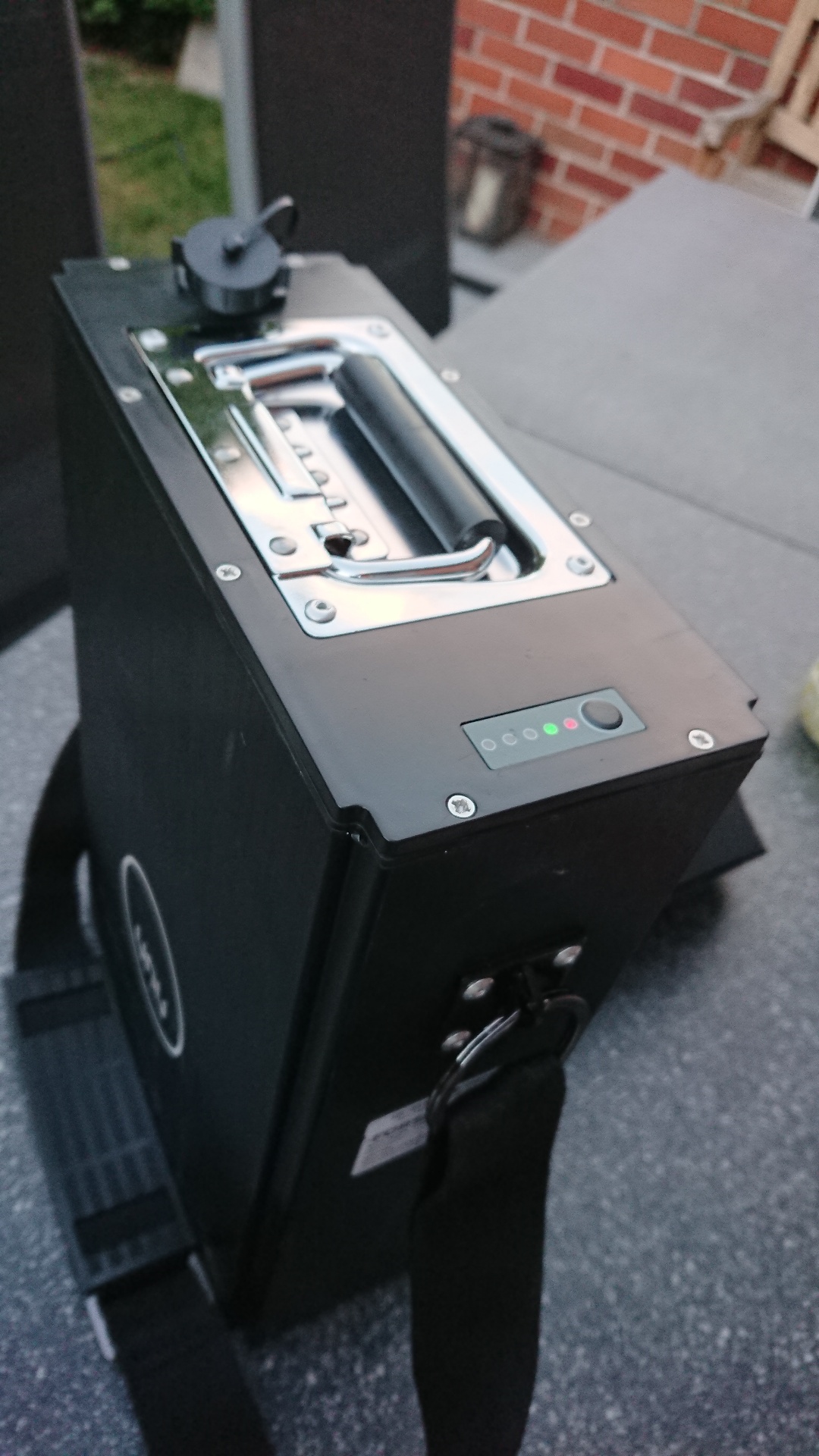 wenn Du auf Nr. sicher gehen willst, sägst Du parallel zum Gehäuse mit einer Metallsäge die Halterung für die D - Ringe ab und entgratest sie mit einer Metallfeile. So kannst Du sicher sein, dass Nichts ins Innere des Gehäuses fallen kann und die Kabel vom Ladegerät am scharfen Grad des Schnittes beschädigt werden können.