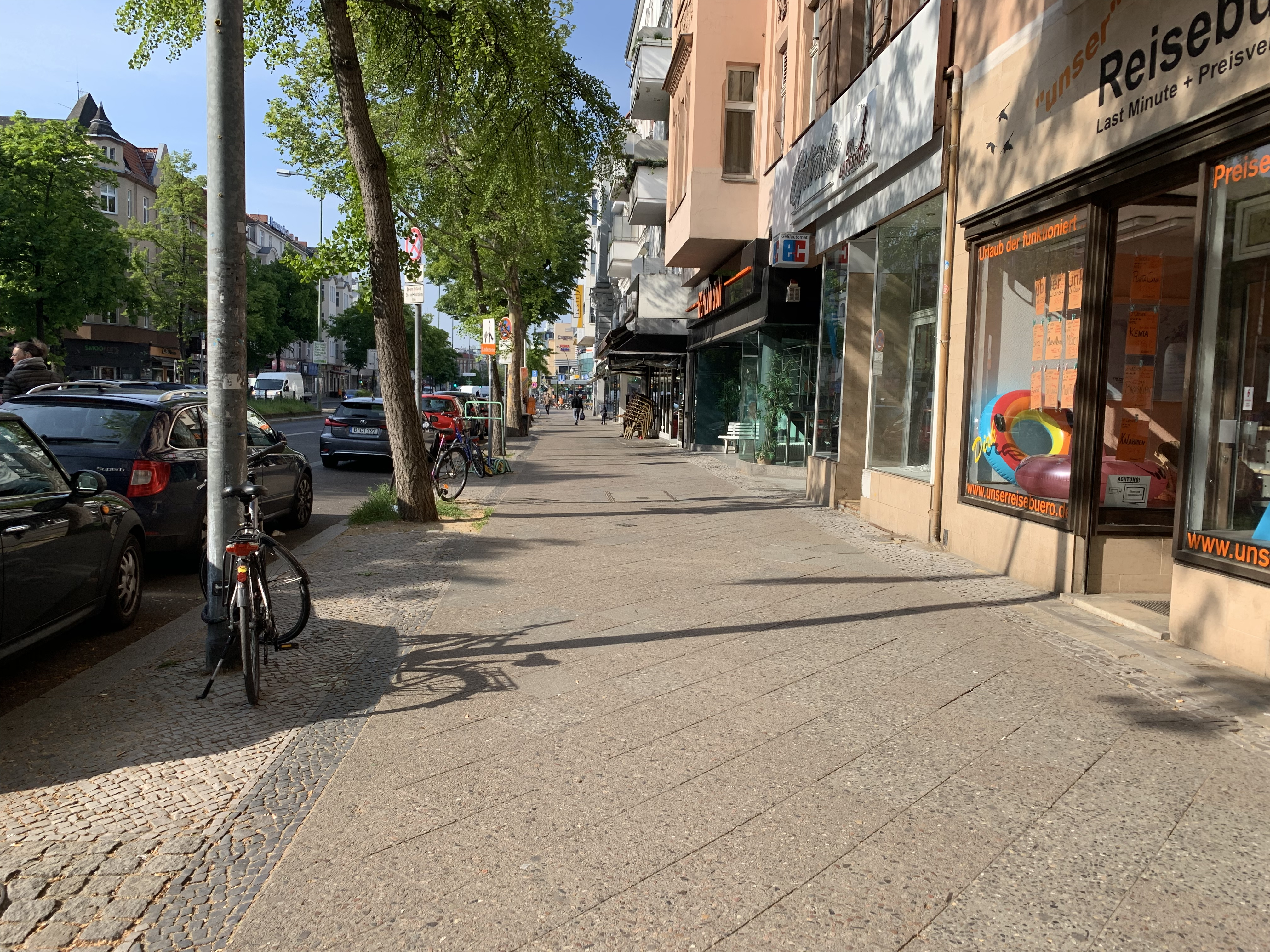 Gehweg in Berlin Schöneberg, heute um kurz nach 9:00 Uhr. Gut dass hier keine Scooter mit 12 km/h langgekachelt sind. Hätte ja sonstwas passieren können!