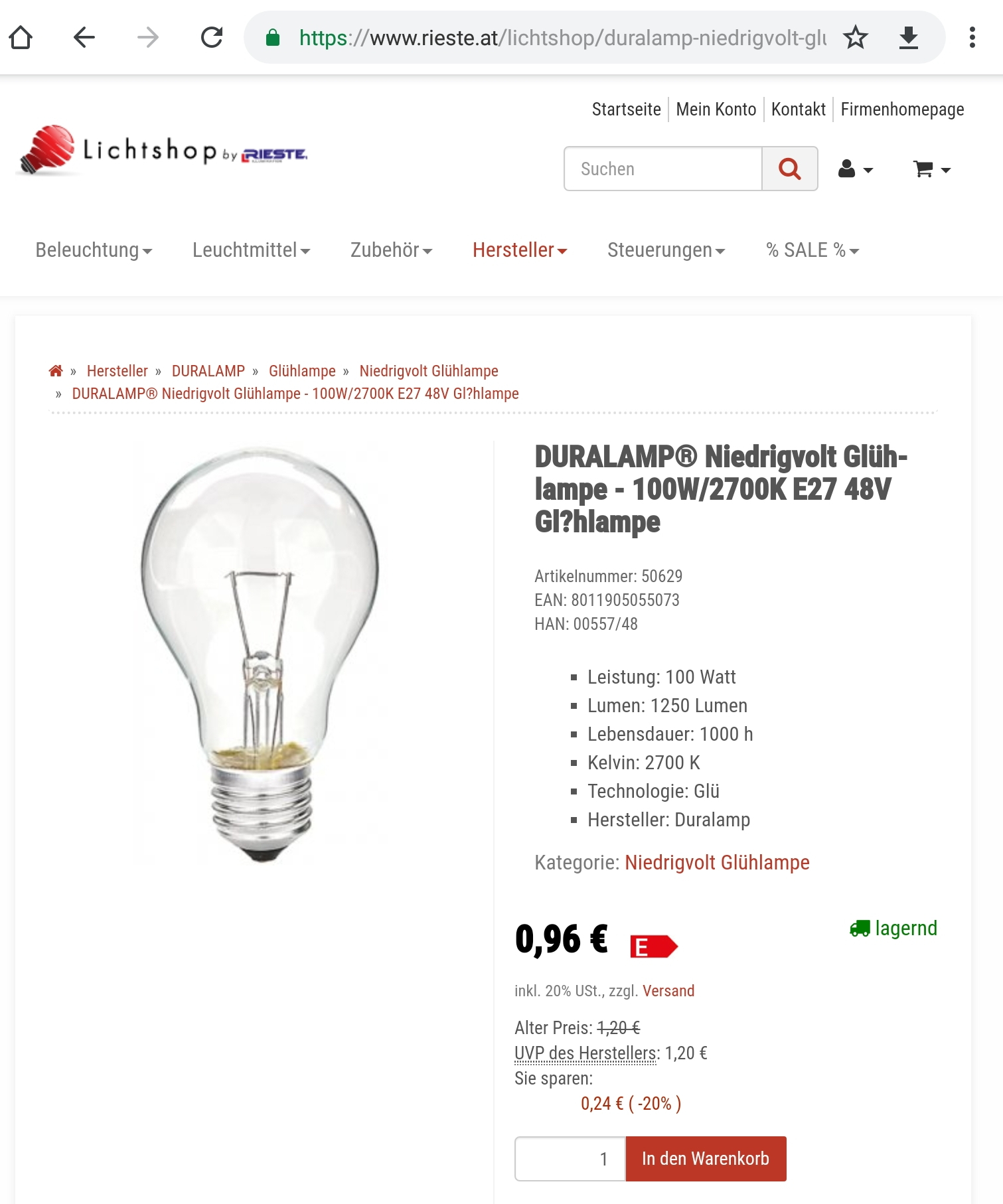 Ich wusste gar nicht, dass es 48V-Glühbirnen gibt