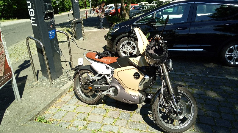 Ich lade meinen Akku nur noch ausgebaut zu Hause, da in der Garage kein Strom (vorm Umzug vor zwei Jahren im Keller immer direkt im Moped). Zudem ist das Ladegerät leider nur Indoor fähig und auch kein Schnelllader, also hab ich bisher noch nicht "auswärts" geladen :?