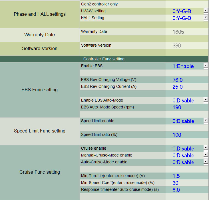 Ich fahre eine Trinity Venus, die mit 60V betrieben wird. Die Screenshots dienen nur als Vergleich für @ziltoid, der sich dessen bewusst ist.Schwabenblitz hat geschrieben: So 16. Jun 2019, 11:48 Hi schon komisch, Du hast doch einen 48V Li-Ion Akku. Die Parameter "Voltage Parameter Settings" sind aber wie bei einer 60V Batterie. Ich würde sagen das passt nicht.