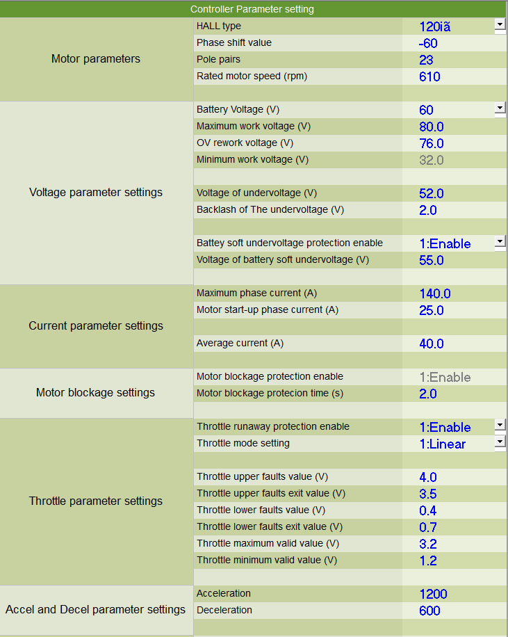 Hi schon komisch, Du hast doch einen 48V Li-Ion Akku. Die Parameter "Voltage Parameter Settings" sind aber wie bei einer 60V Batterie. Ich würde sagen das passt nicht.