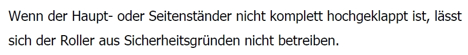Keine Ahnung, ob das beim Hauptständer gelten sollte oder nicht. Der E-Roller ist mein erstes motorisiertes 2-Rad, das ich fahre.