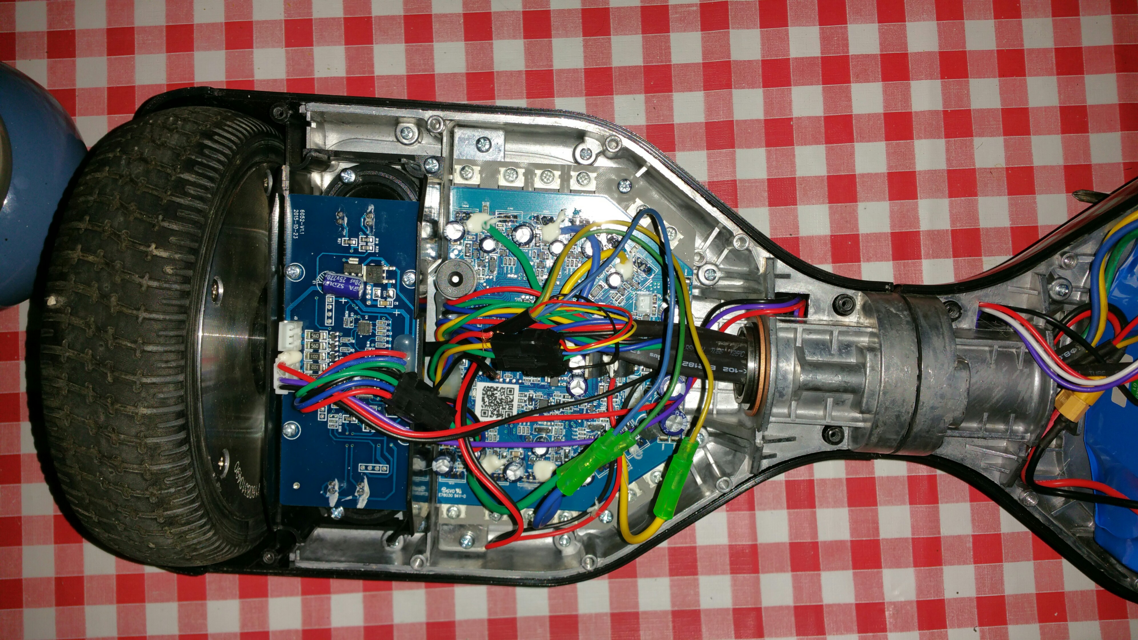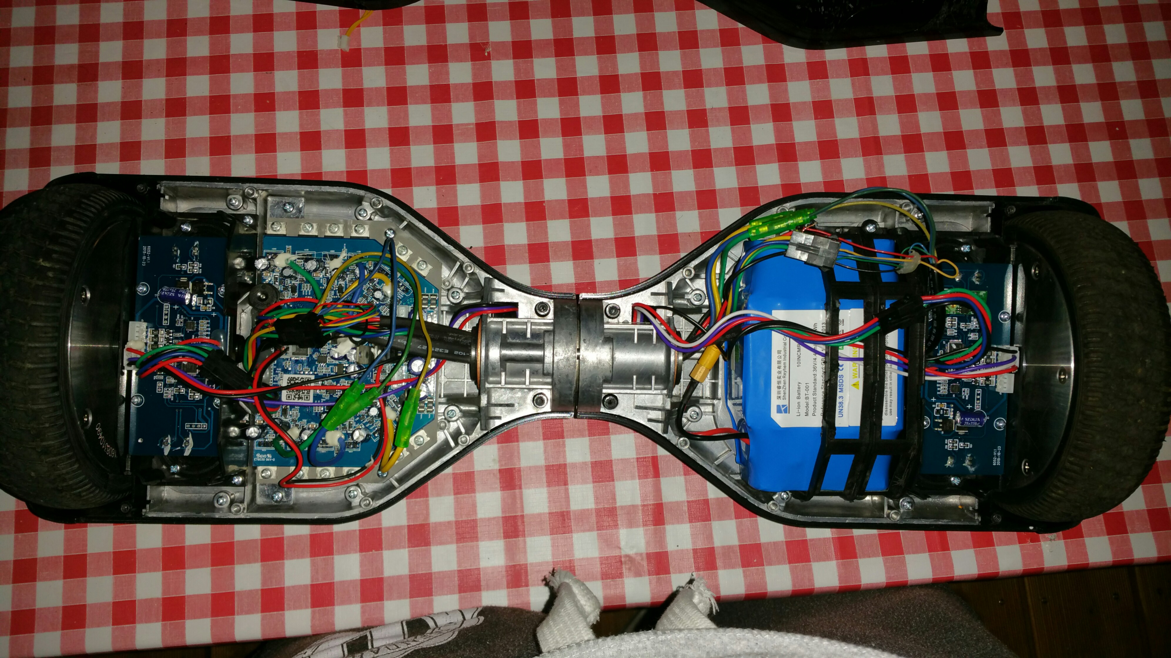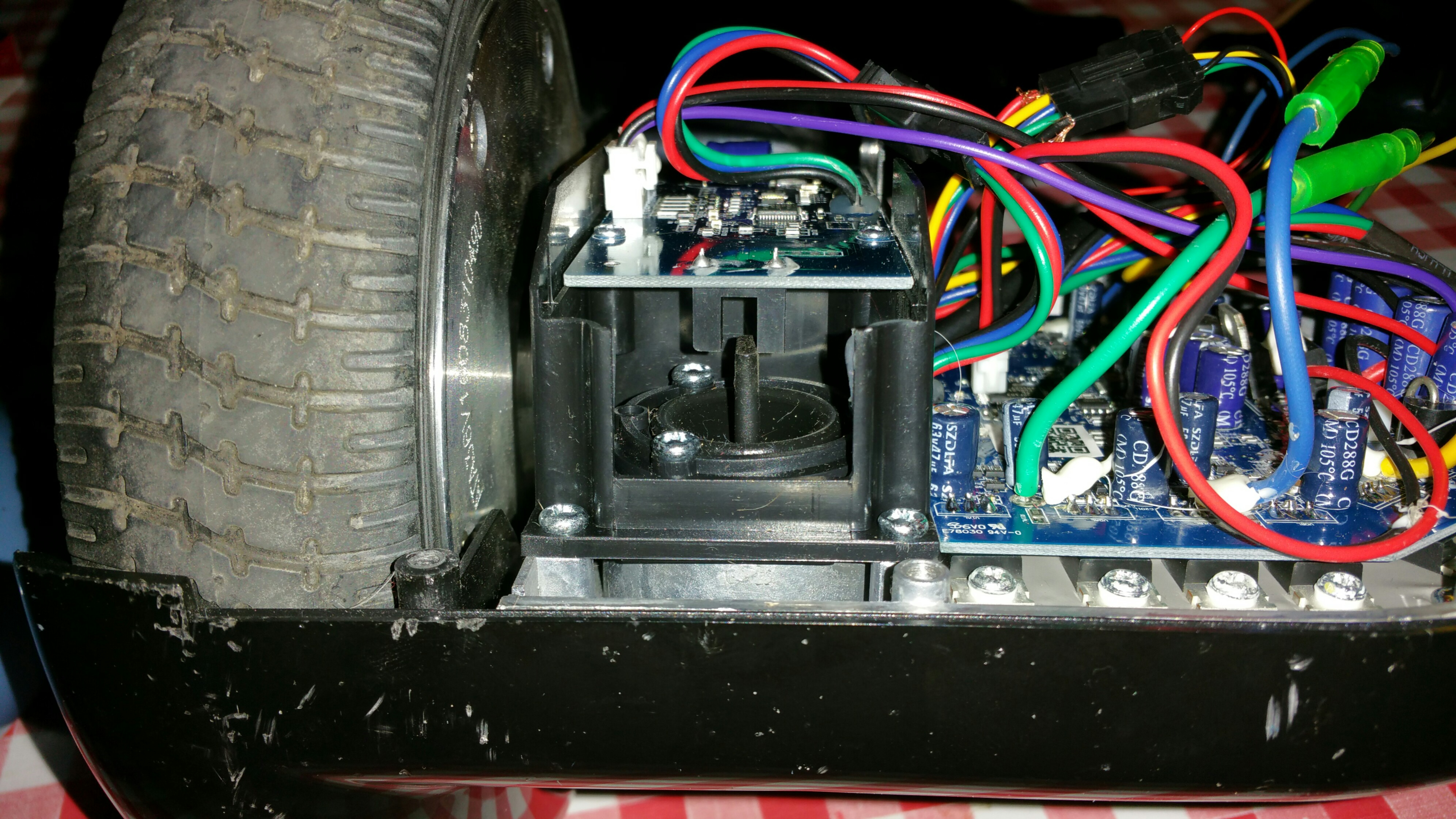 Müsste es nicht ausreichen, die Platinen beider "Hover"boardseiten fest auf EINE Platte zu schrauben und diese per "Strompedal" nach vorn zu kippen? So fährt ja auch das Hoverboard los.