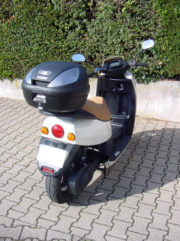 Die Beschleunigung bis 70 km/h ist mit der meiner 800- er BMW vergleichbar. Das Fahrverhalten für einen Roller ist dank dem sehr steifen Rohrrahmen excelent.