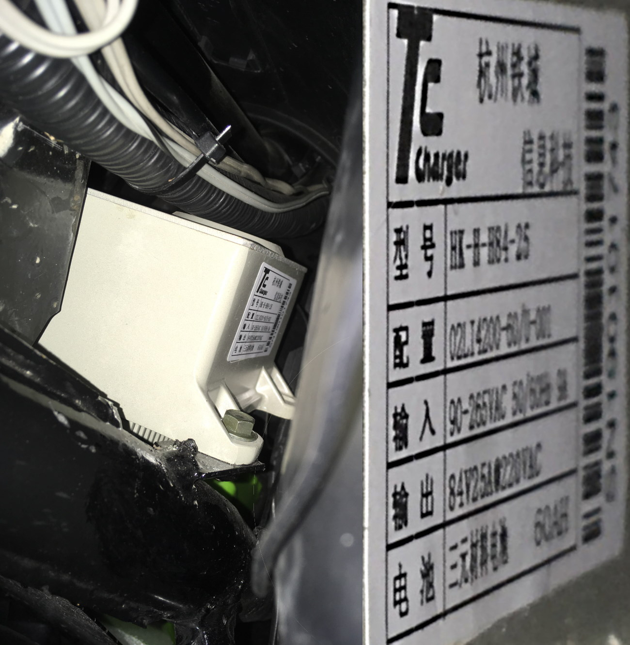Das Typenschild des Ladegerätes kann ich aufgrund des versteckten Einbaus leider nicht kontrollieren, es sei denn, jemand sagt mir, wie ich die Verkleidung demontiere. Ich würde sowieso gern mal an das Ladegerät herankommen.
