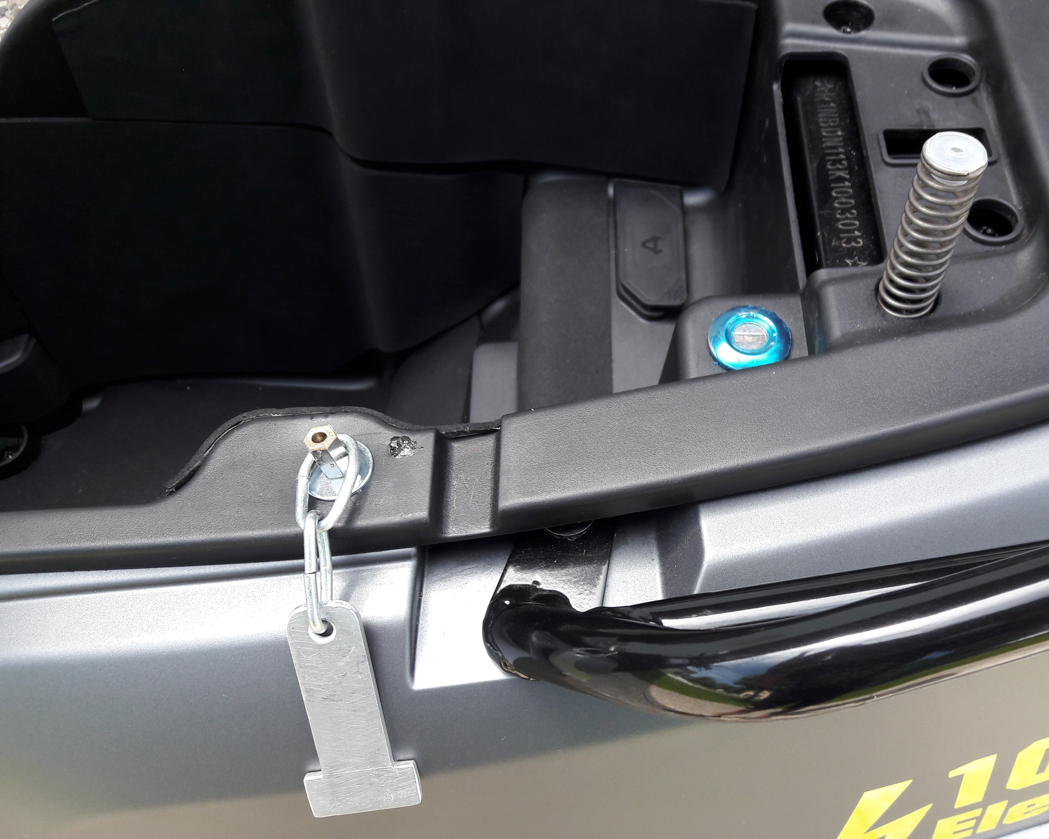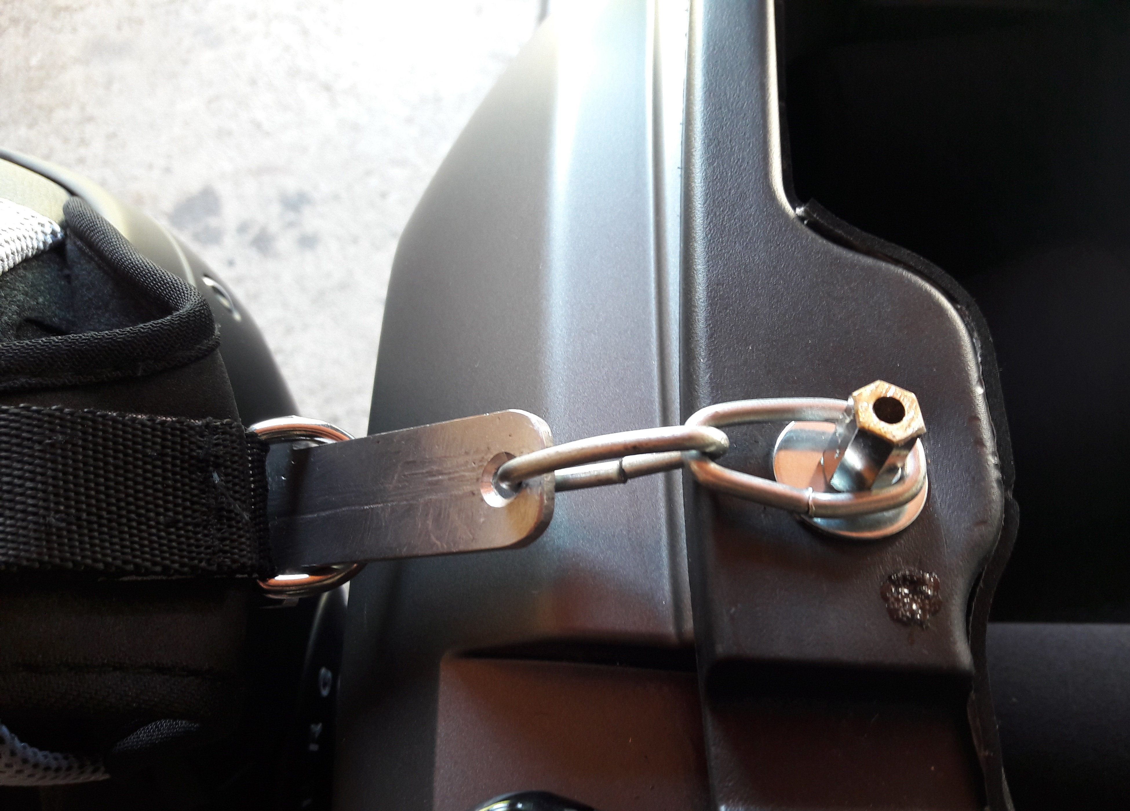 Da muss man erstmal drauf kommen. Klappt bei mir einwandfrei, danke!Sustainable hat geschrieben: Do 22. Aug 2019, 13:12 Der Beitrag von Gunni scheint untergegangen zu sein:Also am besten auf den Helm-Riemen, falls nicht schon vorhanden, eine Öse auffädeln und dann über diesen Zapfen stecken:Gunni hat geschrieben: Do 22. Aug 2019, 10:33 Dafür sind die Nüppel im Sitzfach. Helm da einhaken, Sitzbank zu, Fest.