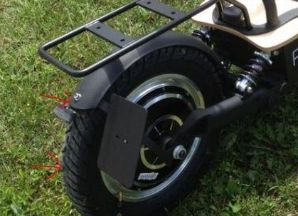 Auf dem Foto habe ich mit zwei roten Pfeilen markiert, wie es ist (obere Pfeil) und wie es sein sollte (unterer Pfeil). Meine Empfehlungen, nicht nur an die Firma Eneway, sondern an alle Zweiradhersteller, ist, hier nicht mit dem klitzekleinen Kostenmehraufwand für ein bisschen Blech zu geizen.