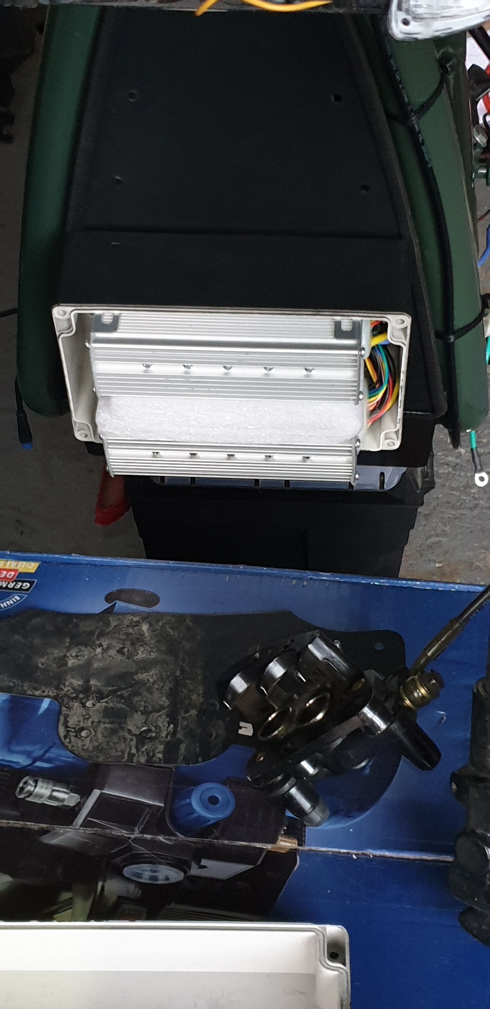 also, gut, die beiden Controller sind also nach außen versetzt worden und in die "Black BOX" verschwunden die VERTIKAL ans vordere Blech geschraubt und fixiert ist.