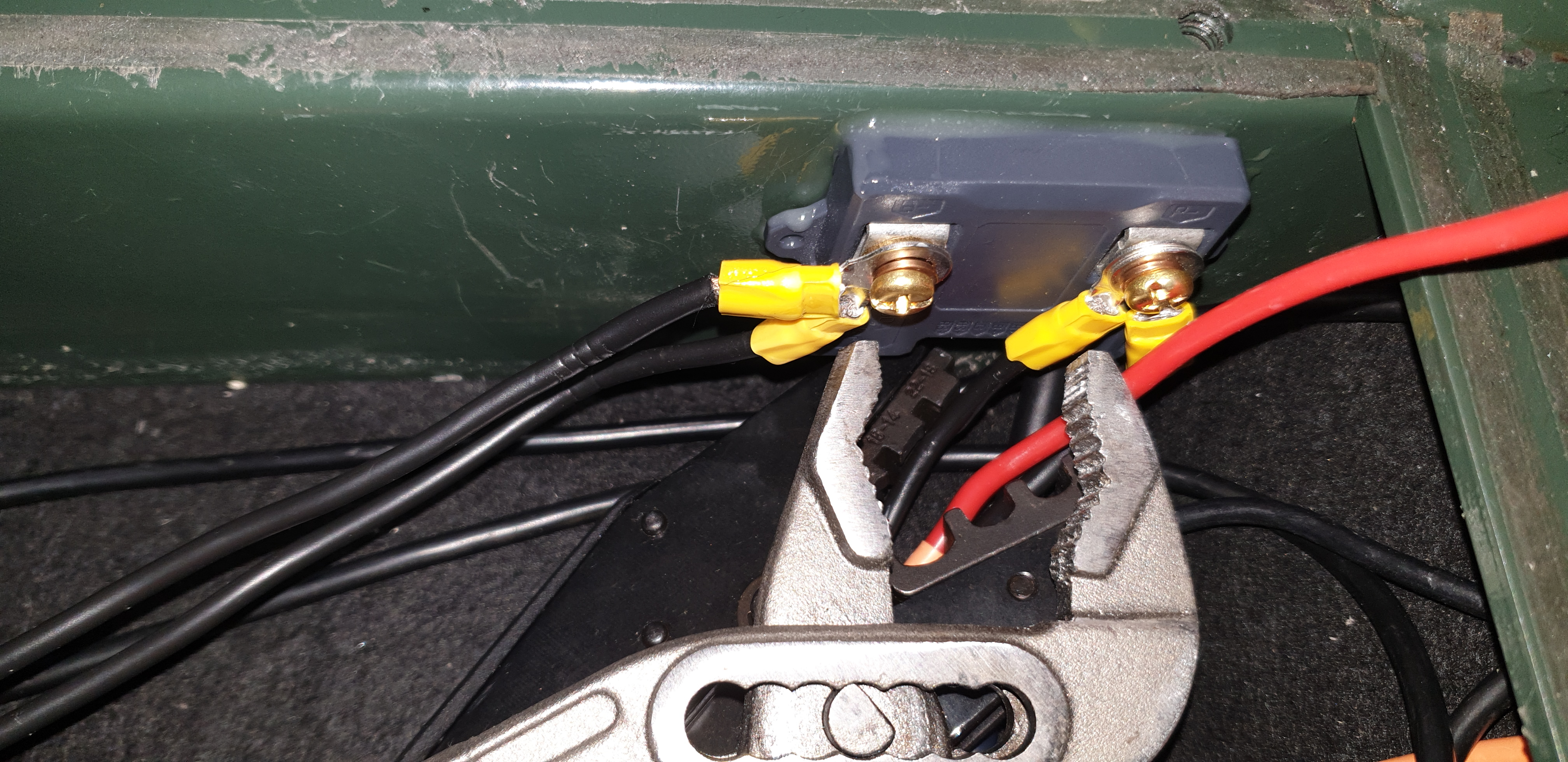 Der Blinkerpieper wurde durch auftrennen der Kabelverbindungen einfach per Klemmschuhe an das Massekabel und 2x Plus angeklemmt. Die Lautstärke lässt sich über ein Potentiometer steuern.
