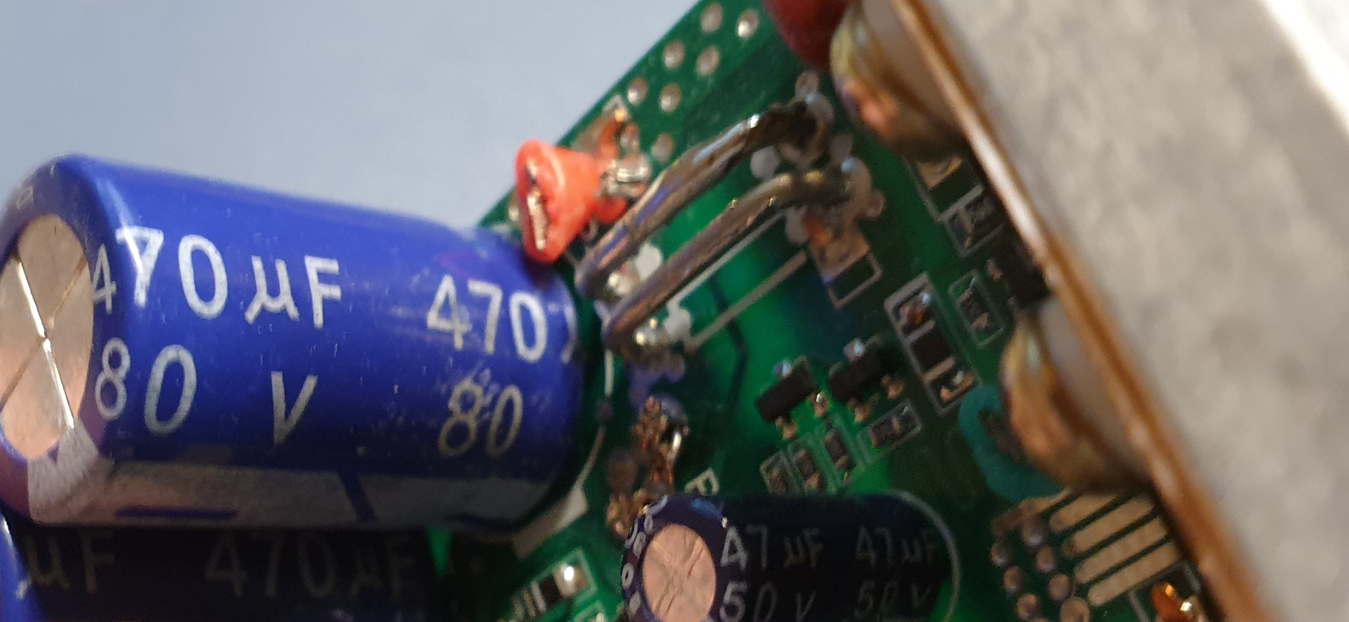 Nur Ersatzteil: Lassen wir den kleinen 100V mal weg (sollte reichen), dann müsste ich 5 tauschen. Also, den µF-Wert behalte ich bei und erhöhe nur die Spannung?