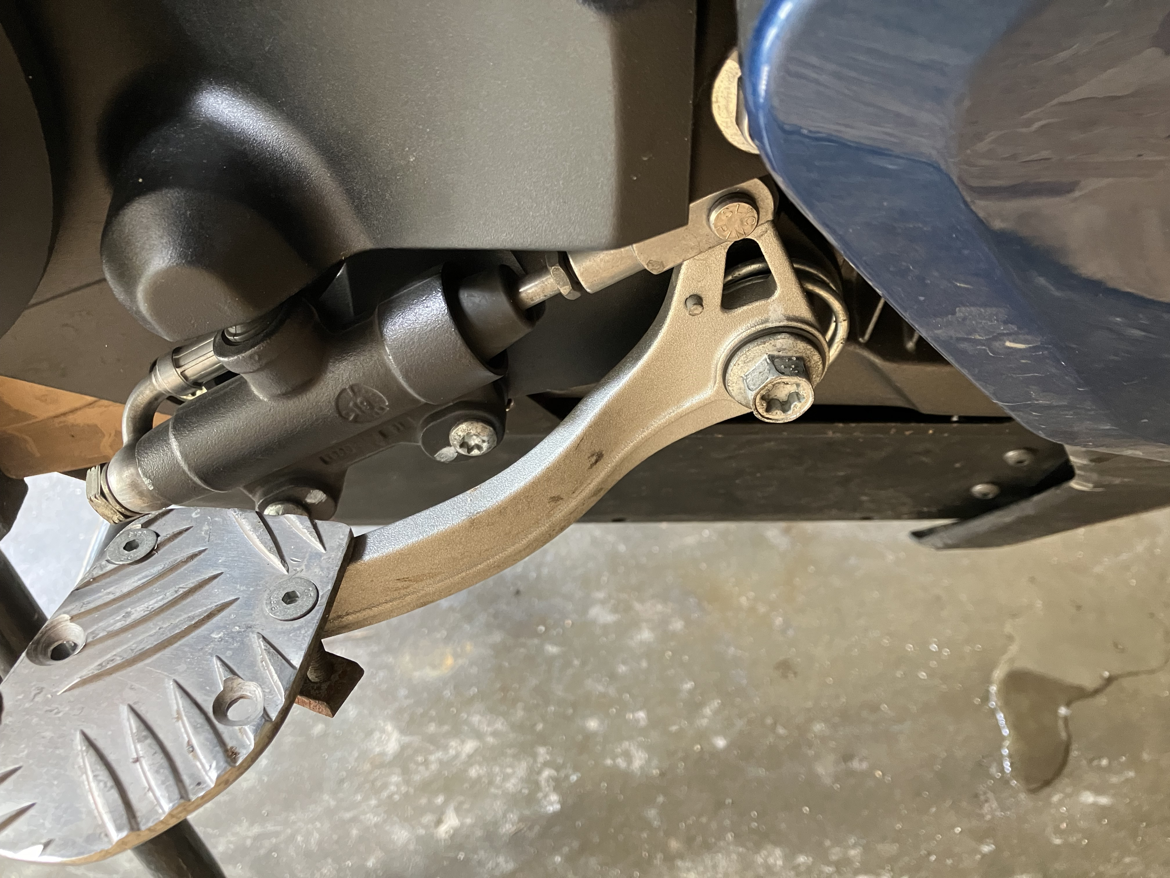 Aber auch dafür hätte ich ne Idee. Es ist ca 1cm Platz also könnte man sich mit nem Abstandsbolzen behelfen und zwischen Bremszylinder und Fußhebel positionieren damit das ganze ca 1cm mehr raus kommt. Das würde ich vermutlich auch noch in Angriff nehmen.
