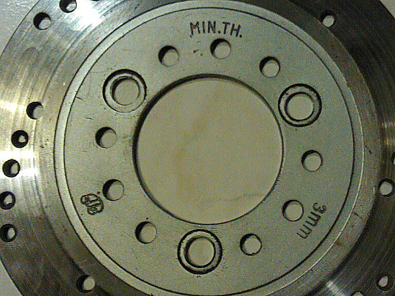 Mittlerweile überlege ich, ob sich überhaupt jetzt schon eine neue Bremsscheibe brauche. Der Durchmesser beträgt 180mm, also o.k. Die Dicke beträgt nach fast 5 Jahren und rund 19000km 3,1mm von ursprünglichen 4mm im Neuzustand. Keine Risse (optisch und akustisch geprüft),keine Riefen usw.