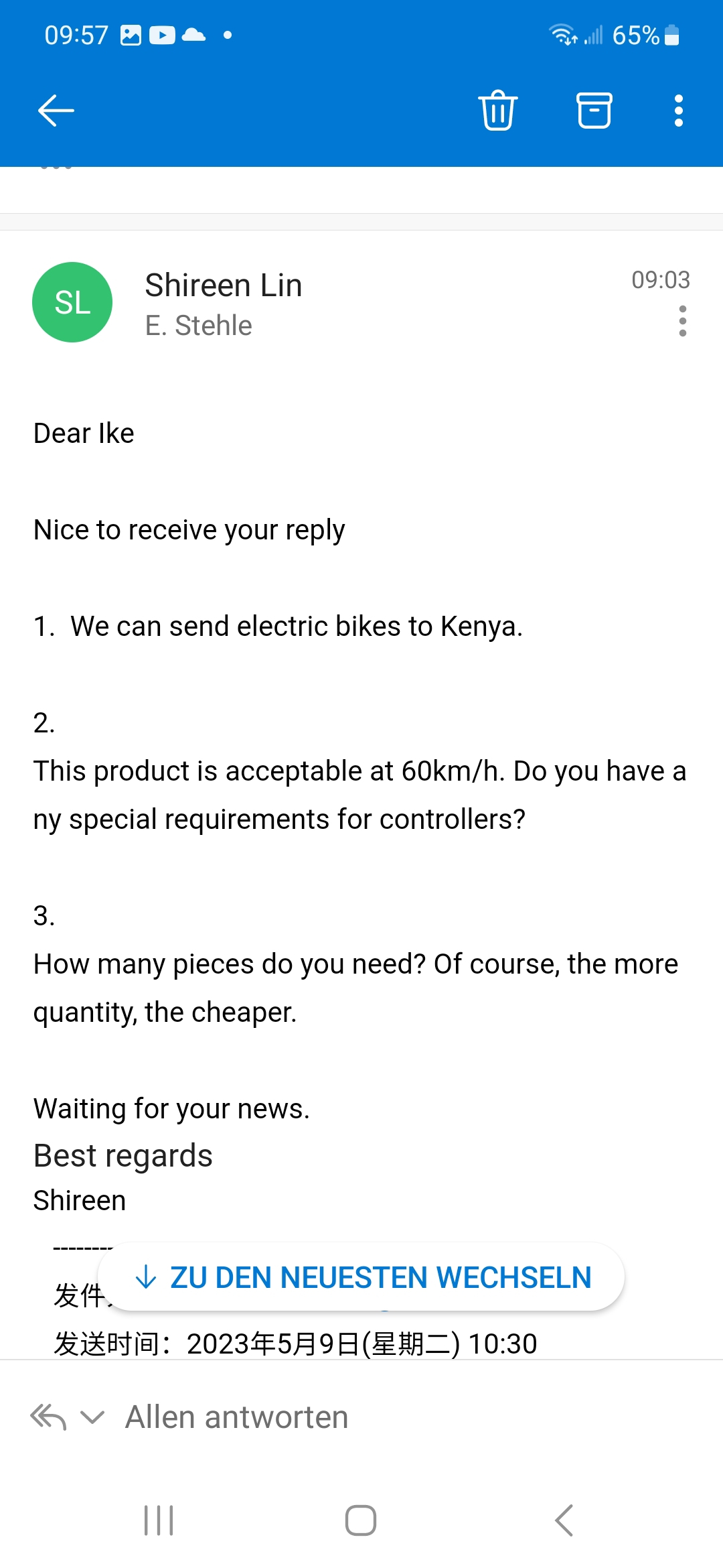 Nun habe ich direkt Kontakt mit der Firma Yuhanzhen in China.