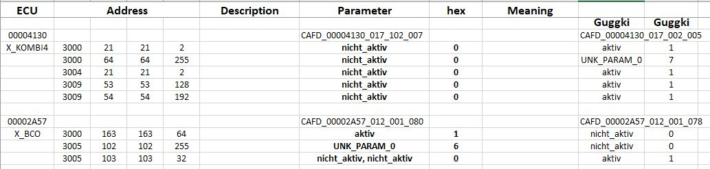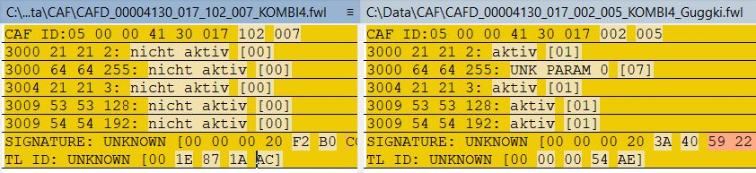 CAF ID ist die Datei, die ist offensichtlich etwas anders. 00004130 im Dateinamen ist die ECU, hier KOMBI4.