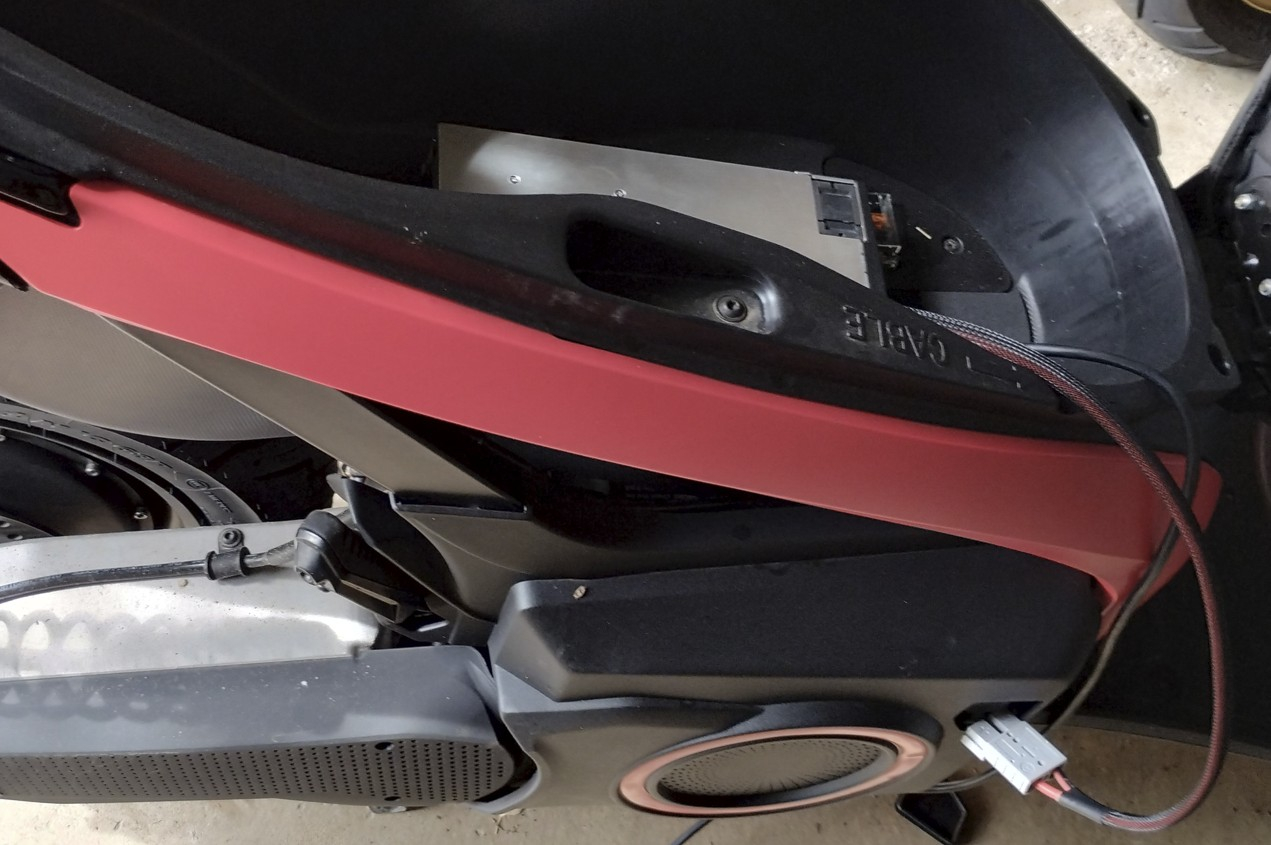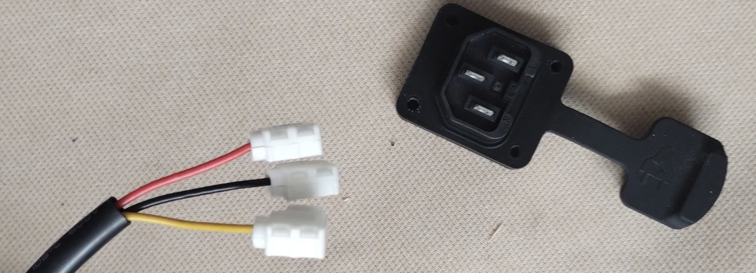 Idee : unter die Abdeckung vom original Lader kommen dann die beiden HV Kabel (Durchbrüche zum Batterieraum gibt es ja schon in Serie) zum Anschluss des neuen Laders oder auch zur sonstigen Stromabnahme .. wird wohl auch ein XT90 Stecker analog dem Ladegerät.