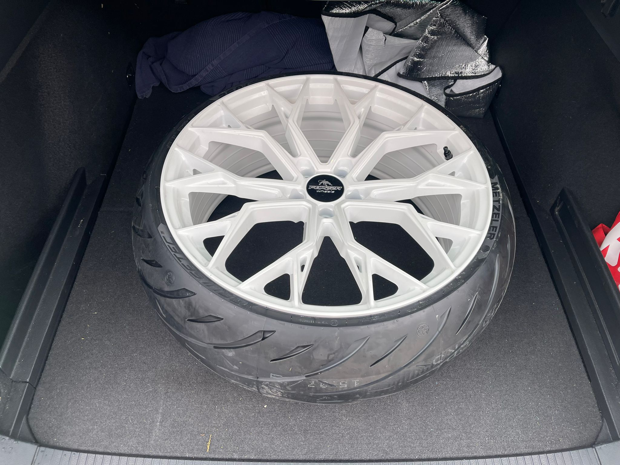 Das Aufziehen des Motorradreifens (260/35-21“) auf die Autofelge (9x21“) hat mit mehreren Anläufen schlappe 45 Minuten gedauert aber jetzt sitzt er!