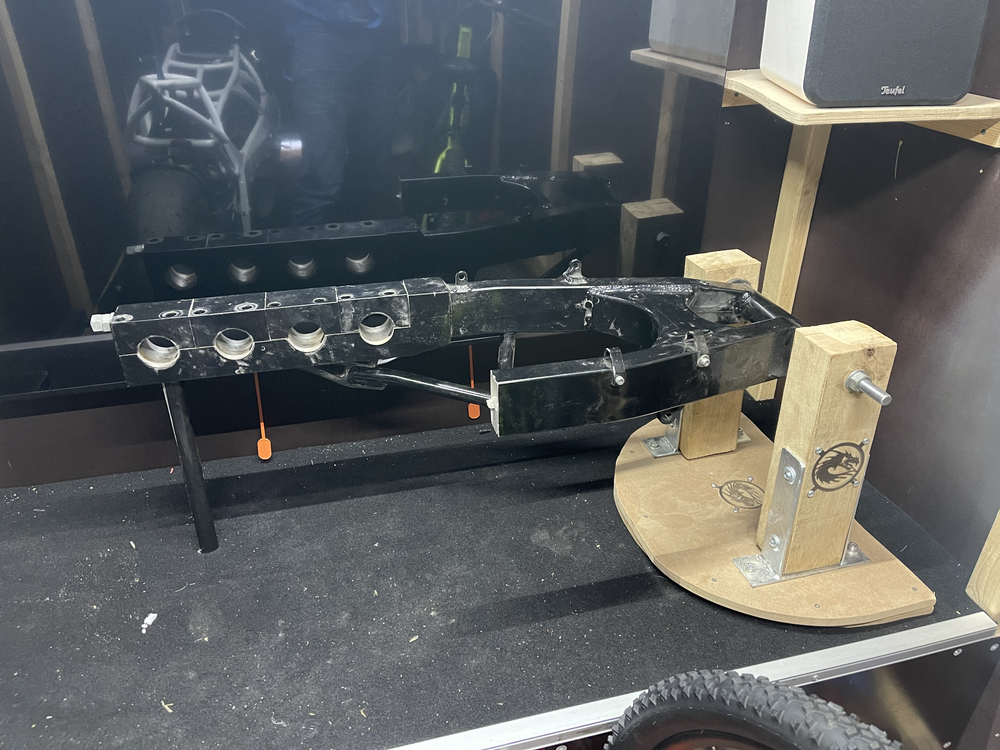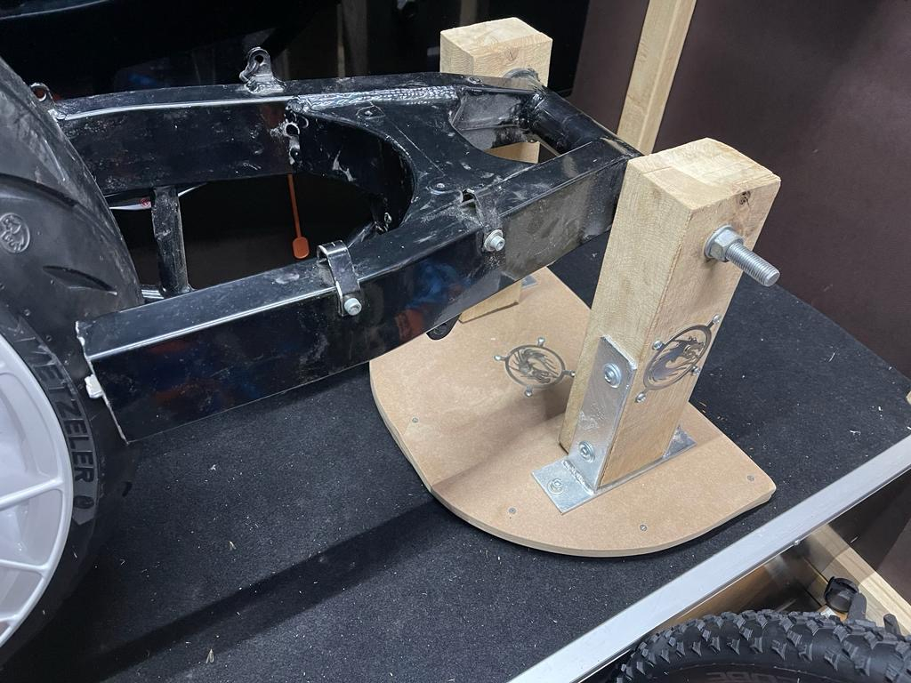 Mal auf die Schnelle eine Schwingenhalterung gebaut. Keine Angst, das Rad ist noch nicht befestigt