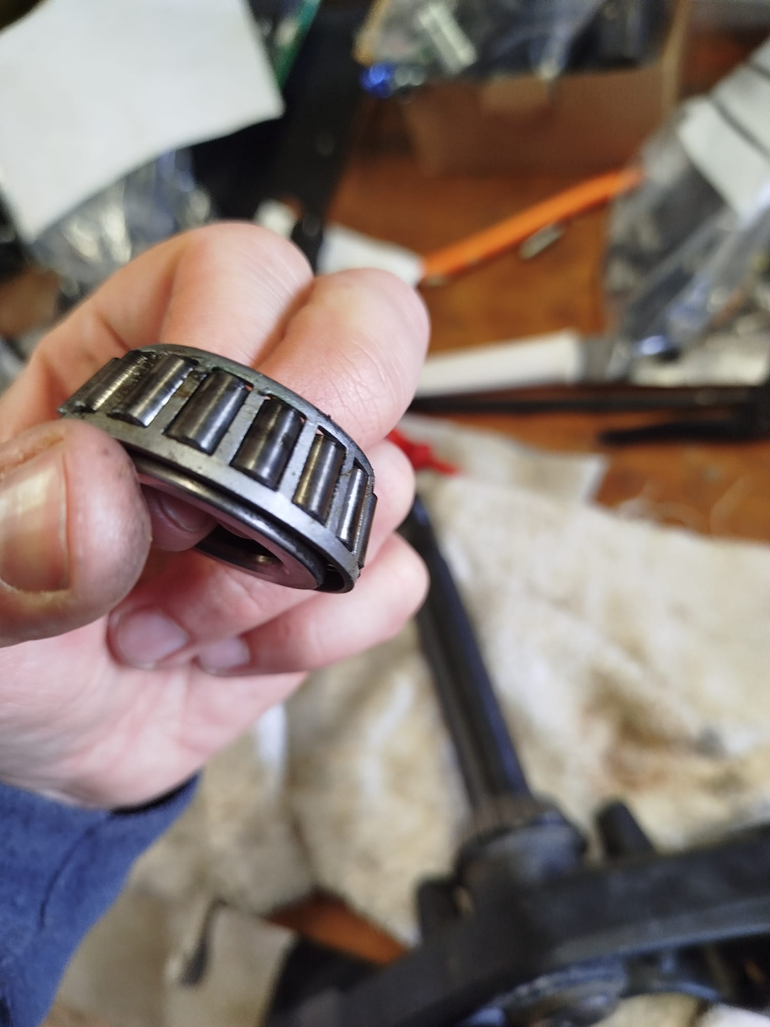 Heute habe ich mal genauer nach der Ursache für das Knacken beim Lastwechsel im Lenker gesucht und gefunden. Habe dafür an das Lenkkopflager gemusst. Nach dem Lösen der Kronenmutter ist mir die untere Brille mit der Lenkkopfwelle? (heißt das so?) in die Hände gefallen. Ich kenne das so, dass das obere Lager auf der Lenkkopfwelle kein Spiel hat sondern eine Passung hat. Hier konnte man das einfach draufwerfen. Daraufhin habe ich ein paar Körnerpunkte auf der Lenkkopfwelle gesetzt, so hat das Lager kein Spiel mehr und ging schön straff drauf. Genauso hatte die obere Brille Spiel auf der Lenkkopfwelle, diese wird mit einer Schraube von oben gegen die Kronenmutter gedrückt. Die Mutter habe ich mit 60Nm angezogen.