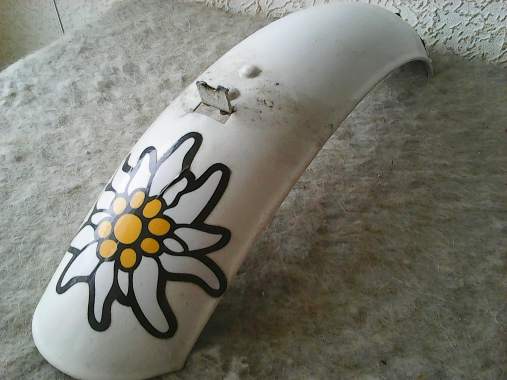 Der Halter oben ist mittig gebrochen. Nun gut, dann halt ohne vorderes Schutzblech zur Physiotherapie. Und als ich da so im Warteraum saß, kam zufälligerweise ein Anruf aus Bruchsal mit einer Danksagung zu meinem Akkutestbericht. Habe dann mein heutiges Problem geschildert. Umgehende Zusendung eines neuen, vorderen Schutzbleches wurde mir zugesagt, sobald deren Schutzbleche beim Lackierer waren. Darauf habe ich dankend verzichtet, weil das Schutzblech ja sowieso weiß lackiert wird. Also, es gibt demnächst reichlich zu tun.