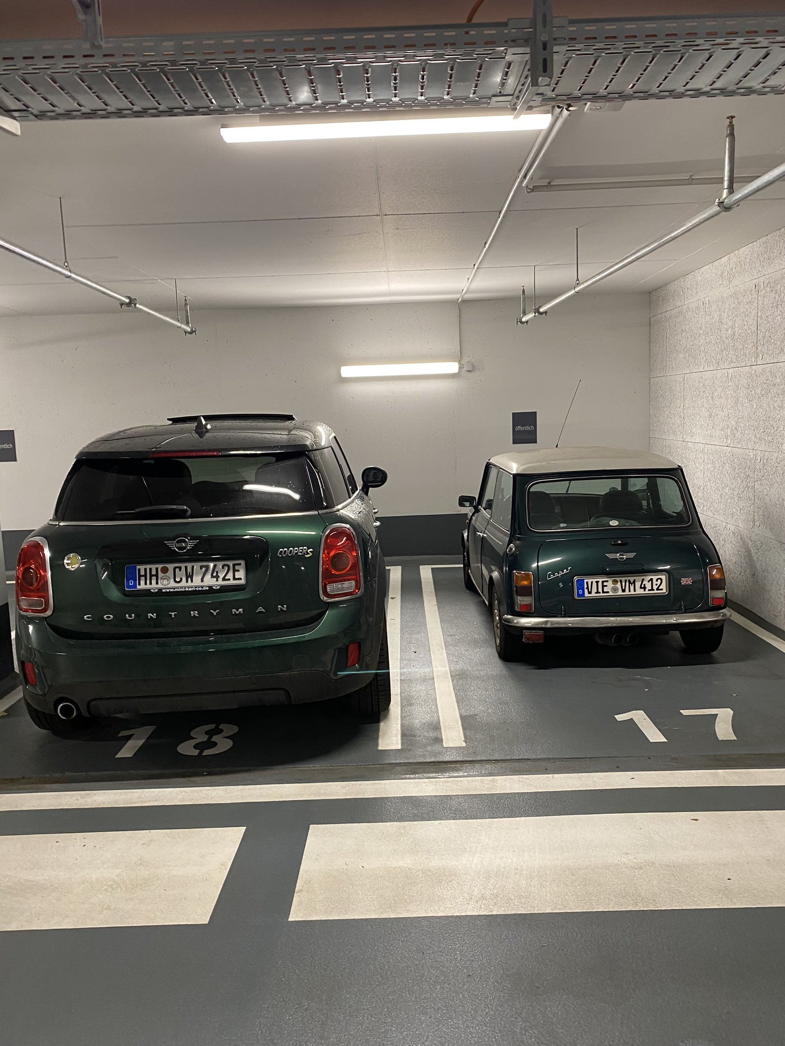 Dieses Bild sagt alles. Wo der Mini fast noch Geld für den nicht genutzten Platz wiederbekommen müsste, sollte ein SUV zwei Stellplätze bezahlen.