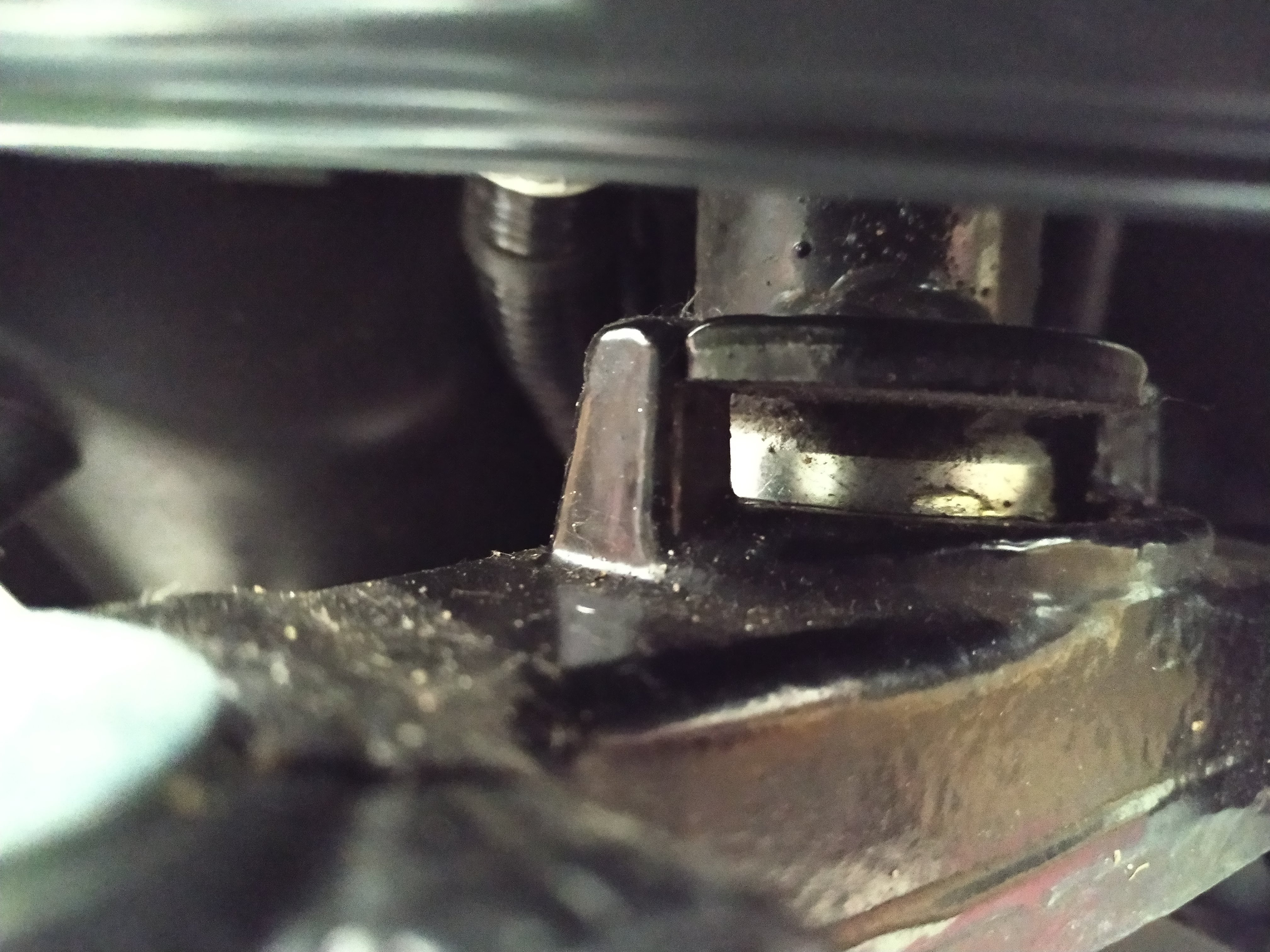 So sieht das bei mir aus. Die horizontale Platte schlägt über ihre gesamte Stärke an die Zapfen der Gabelbrücke an.