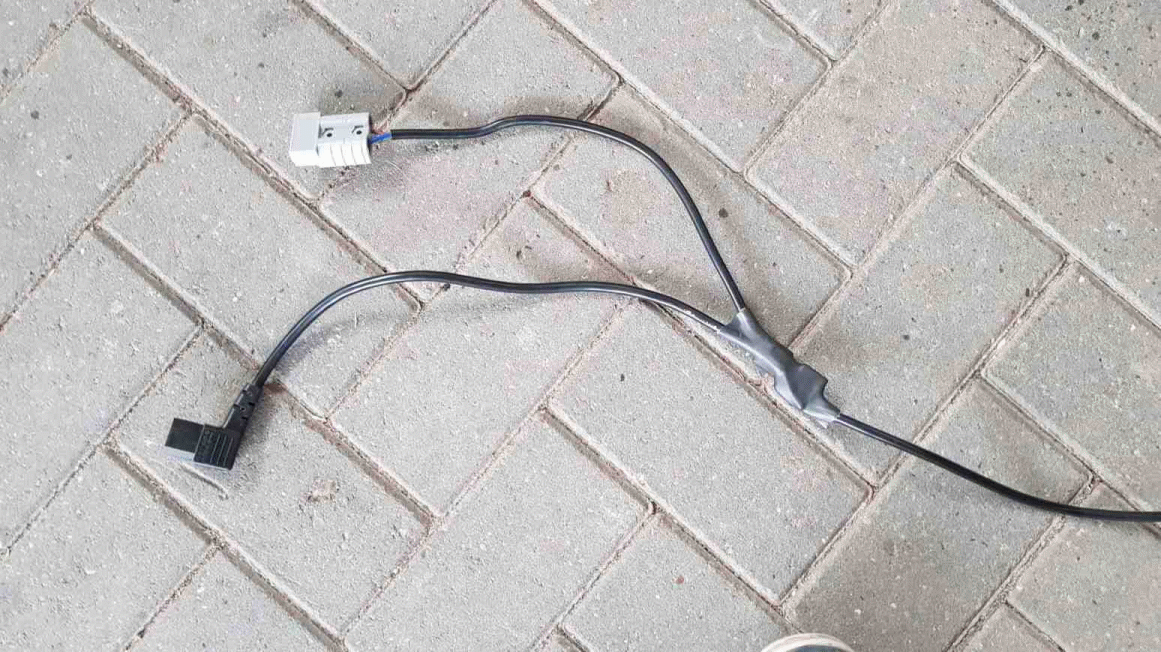 Es ist also der Standard-"Anderson-50A-Stecker" vorhanden und ein modifizierter Kaltgerätestecker.