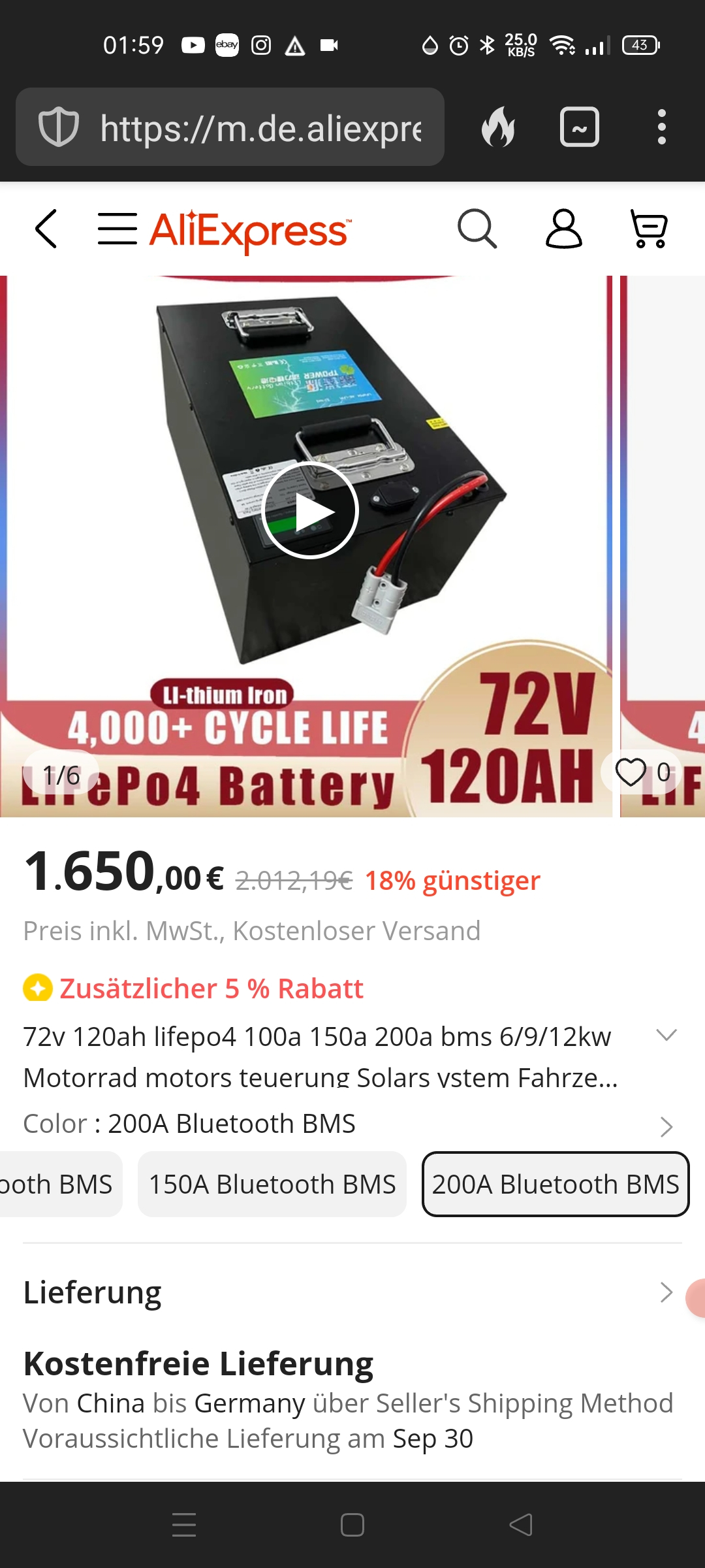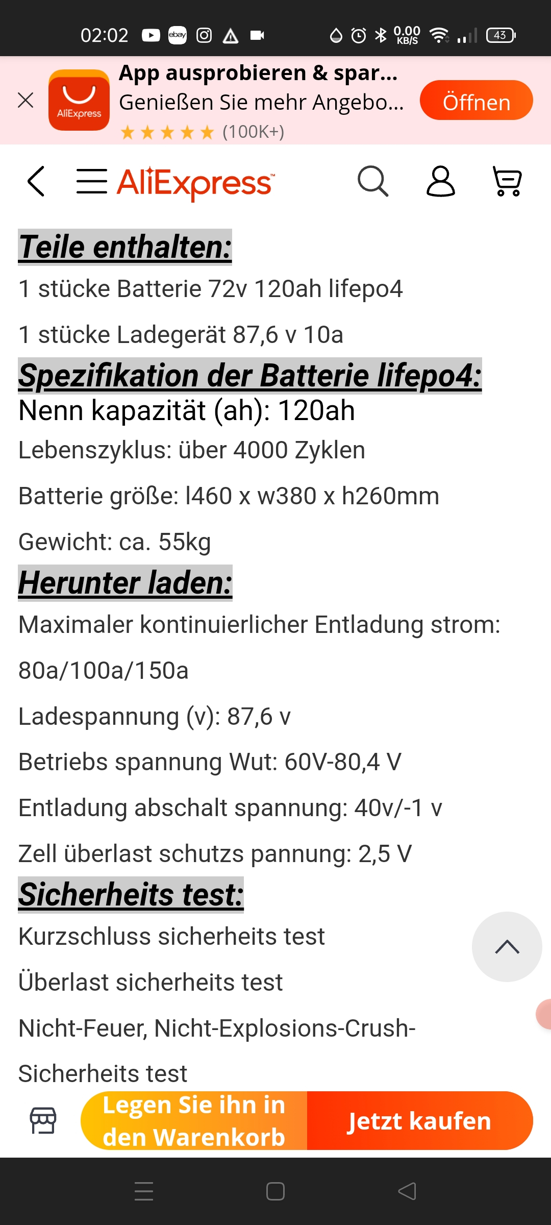 Danke für den Link, für das nächste Batterieleben würde ich mir die folgende Lifepo4 Batterie wählen, siehe Fotos. Träumen darf man ja, aber bis dahin muß ich erst noch die nächsten Jahre meine 72 V 62 Ah Bleigelbatteriebank zu Ende nutzen.