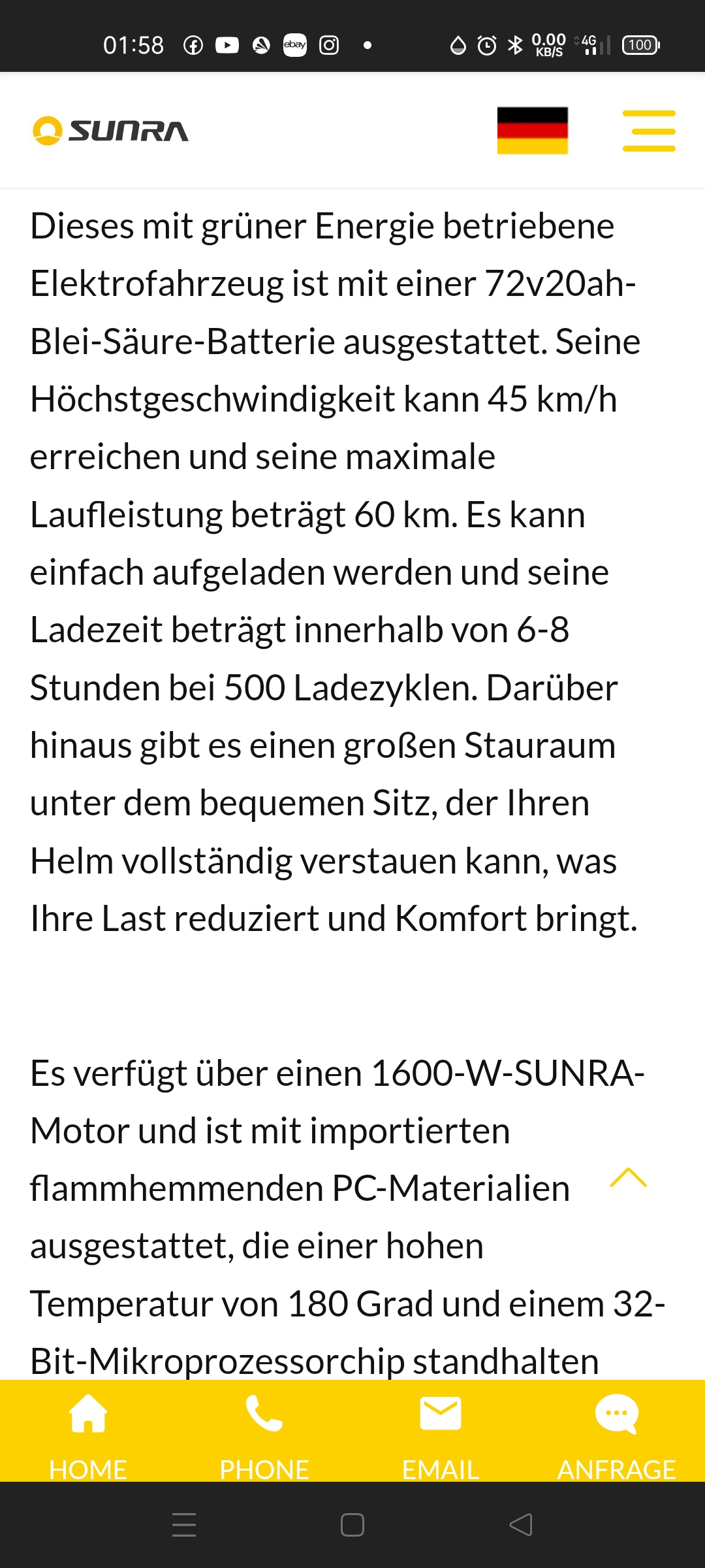 Holle hat geschrieben: Mo 3. Feb 2020, 22:27 Danke für deine Antwort. Da ich beim Einkaufen einen 2Km- Berg von -laut Verkehrszeichen- 12% (Stückchenweise noch steiler) mit ca. 140 Kg Zuladung hoch müßte, bleibe ich vorerst lieber bei meinem alten Benziner. Der geht am Berg teilweise zwar auf 25 Kmh zurück, aber ich komme problemlos den Berg hoch. Was ich beim E- Roller nicht weis. Da liest man ja Einiges, von Überhitzung, Kontroller schaltet ab bis zum Kabelbrand und geschmolzenen Batterien.
