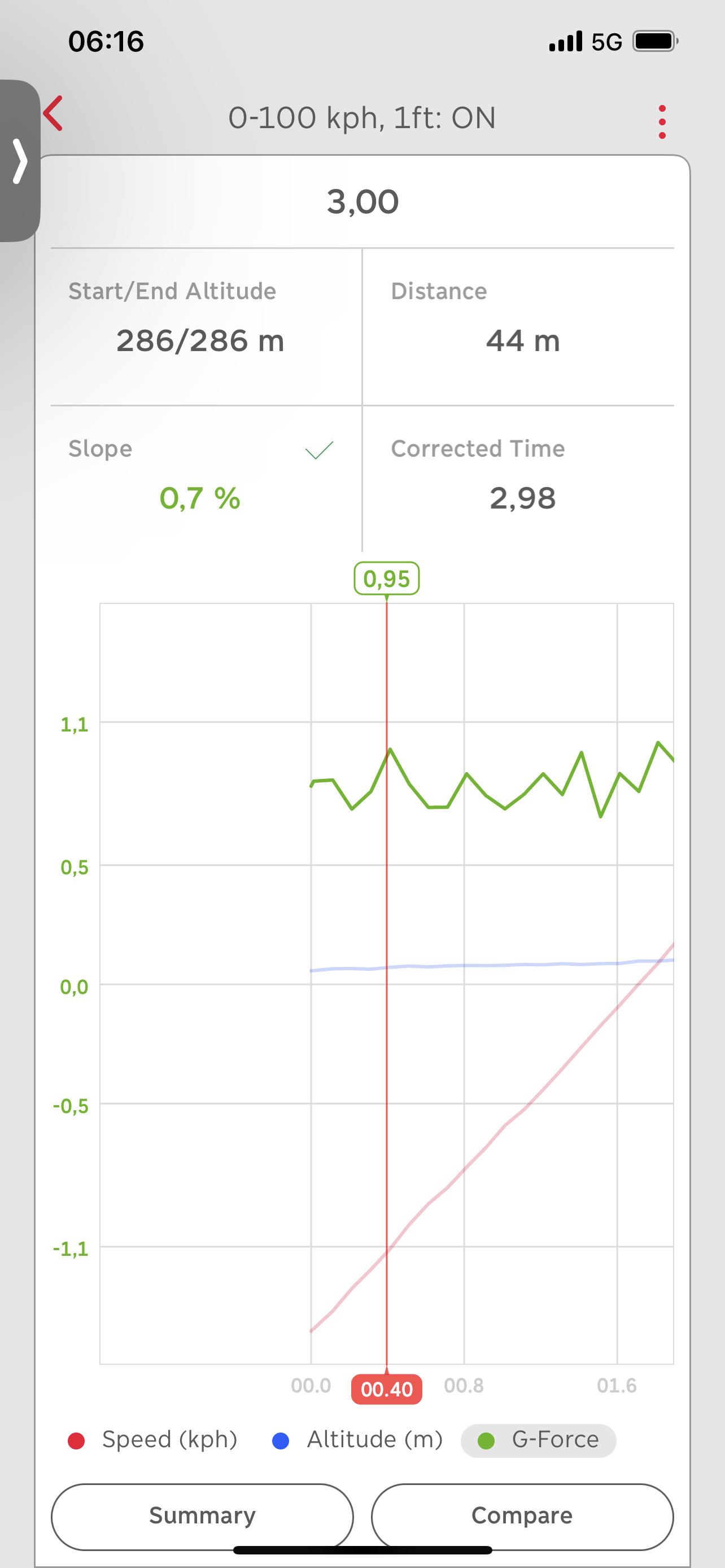 1,06g ist jetzt die maximale Beschleunigung, die ich ermitteln konnte