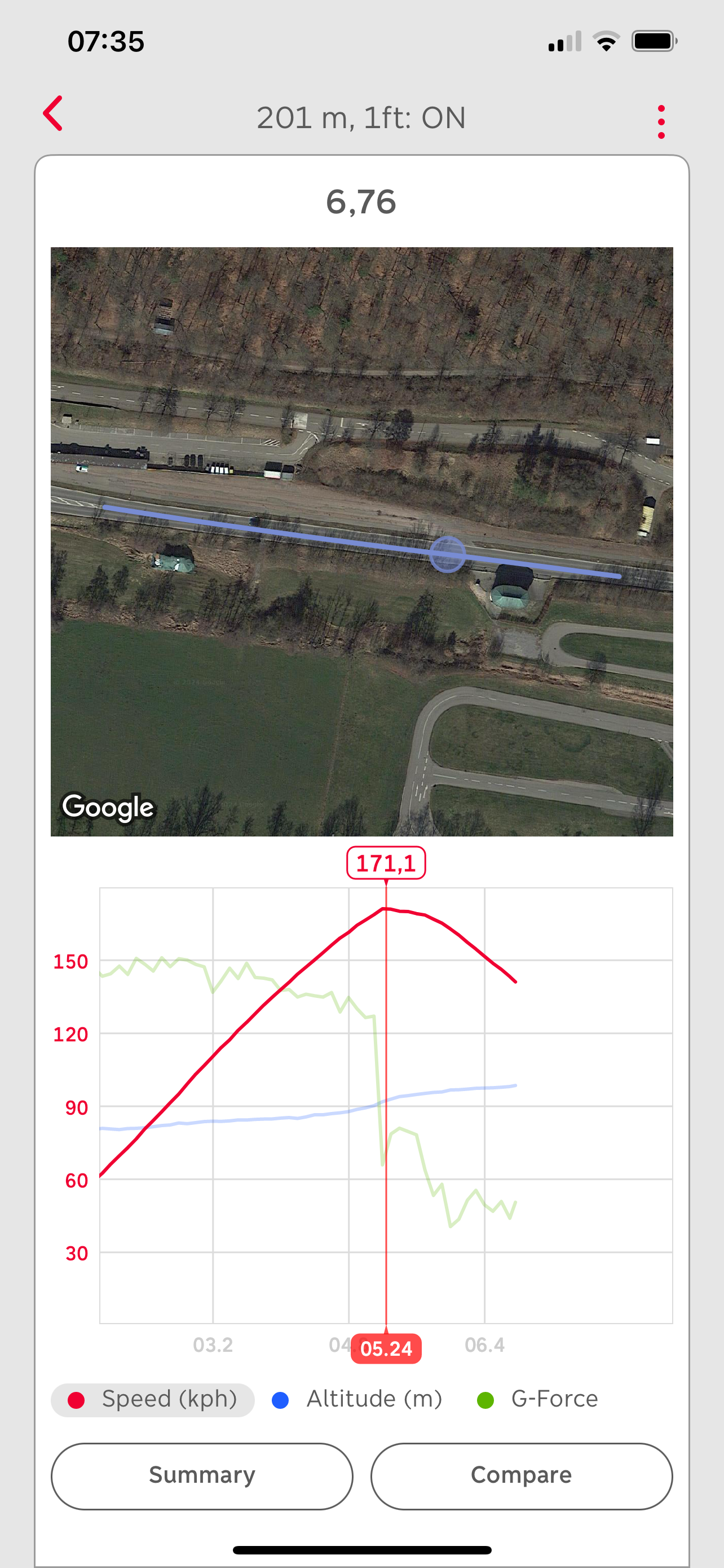 Eigentlich bin ich bei der 1/8 Meile bei 190-200 km/h und hatte mich schon gewundert …