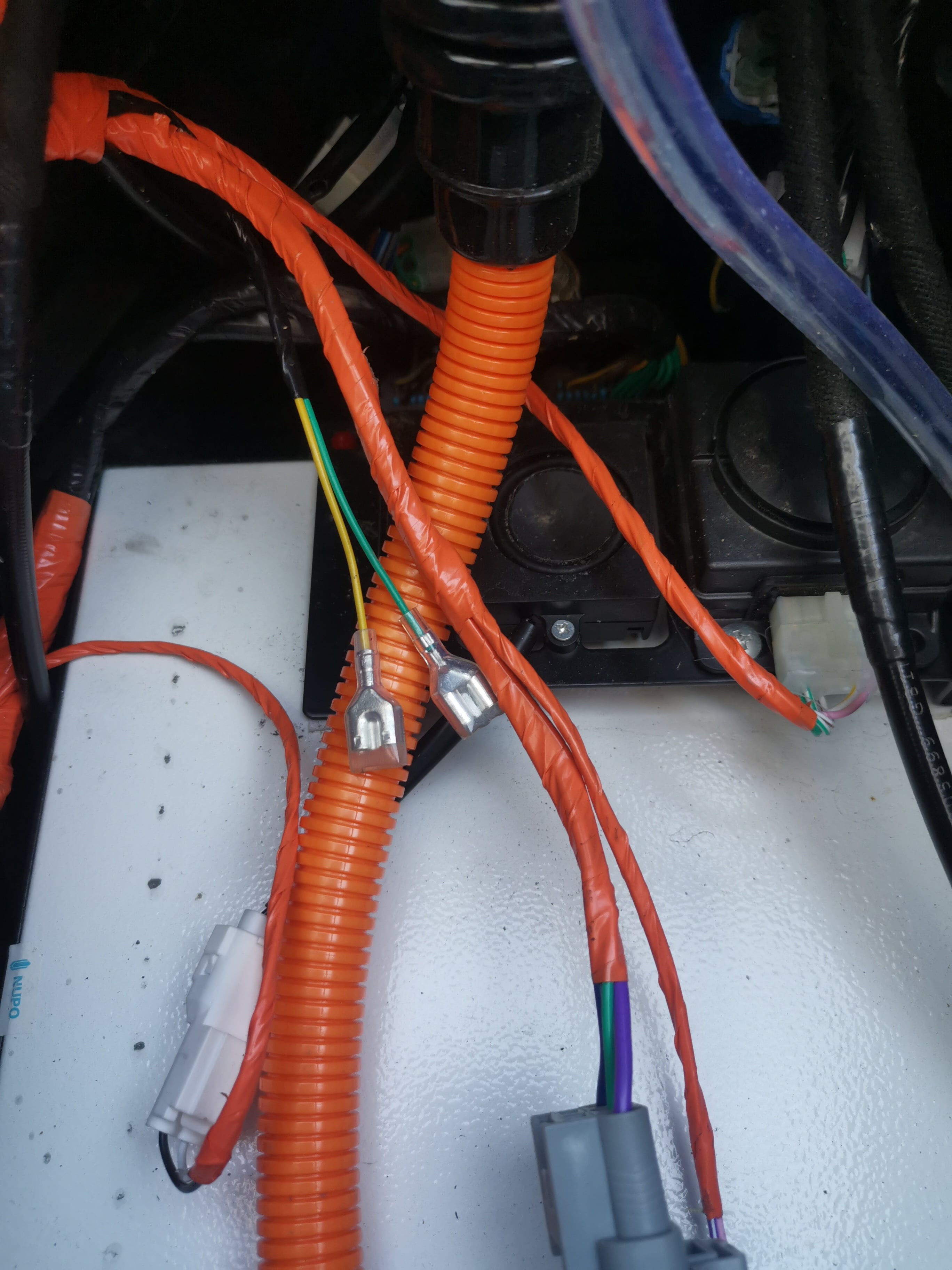 Interessant ist natürlich, dass die Spannung an der Batterie höher ist, als an dem 1,9 mm2 Kabel, das ich auf dem einen Bild messe. Wozu dieser freiliegende Anschluss da ist, weiß ich auch nicht. Ich werde aber direkt mein GPS dranhängen und ein Down-Konverter auf 12 Volt. An den Konverter hänge ich vorerst mal einen 3er USB Panel mit 2 x USB A und 1 X USB C. Das Panel werde ich im Fach installieren.