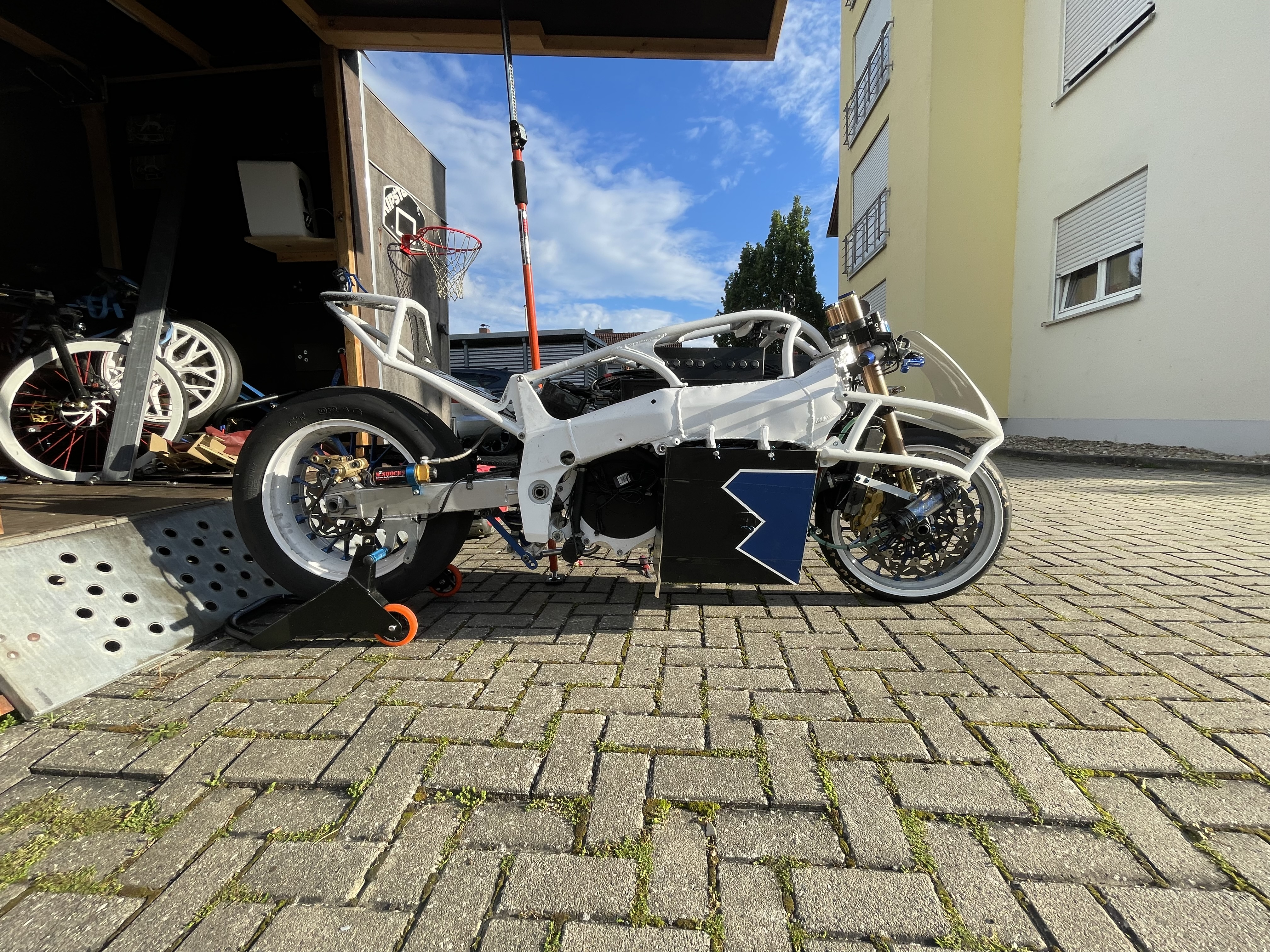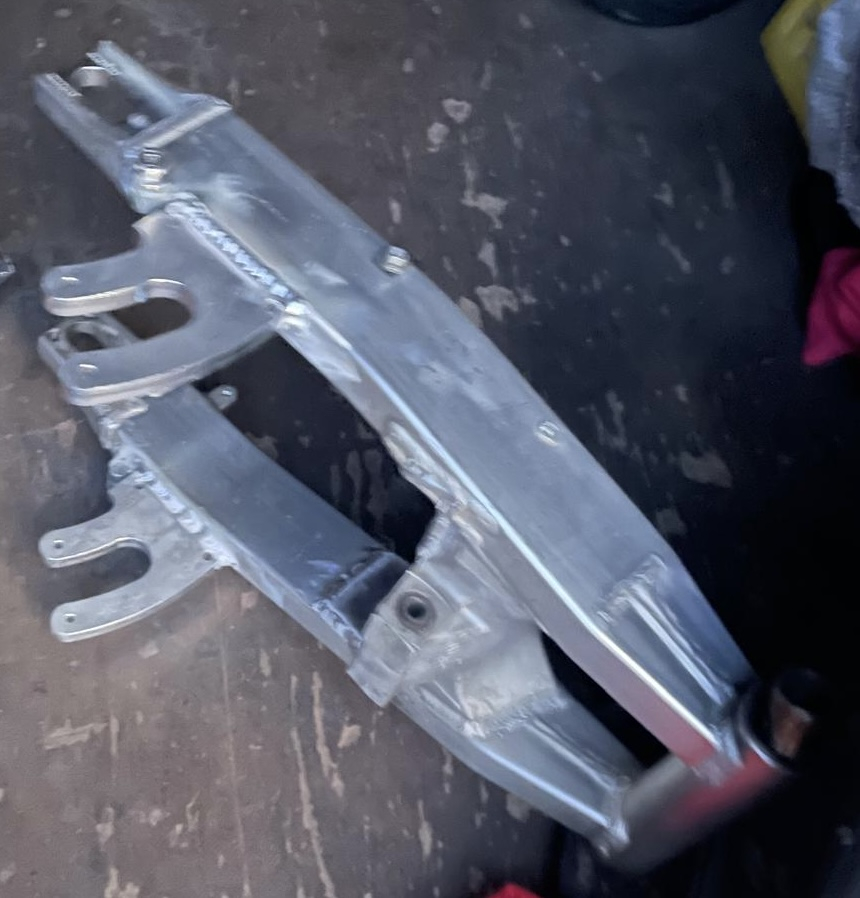 Hatte für mein letztes 1/4 Meile Rennen nochmals eine Serienschwinge verwendet bzw. bearbeitet und musste Vorort nochmals Hand anlegen, da die Kette um 1 Glied verlängert werden musste. Hatte nicht den aufgeblähten Aussendurvhmesser bedacht!