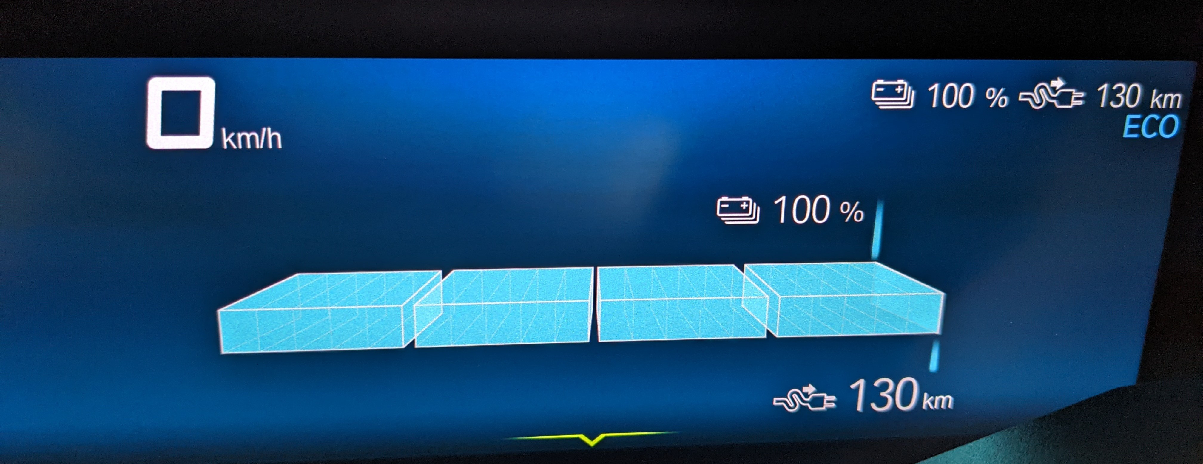 Würde der ECO Modus gewählt, würden wahrscheinlich um die 120 km angezeigt werden.