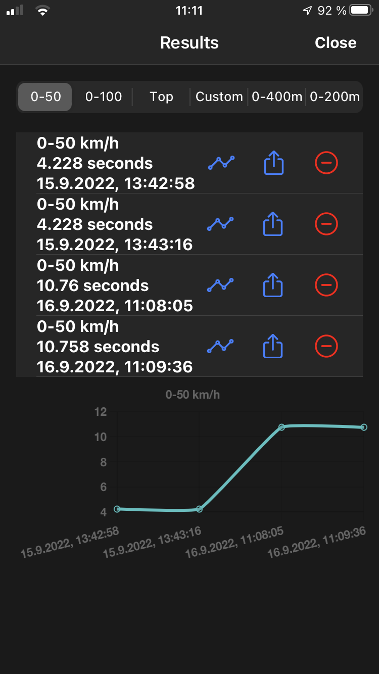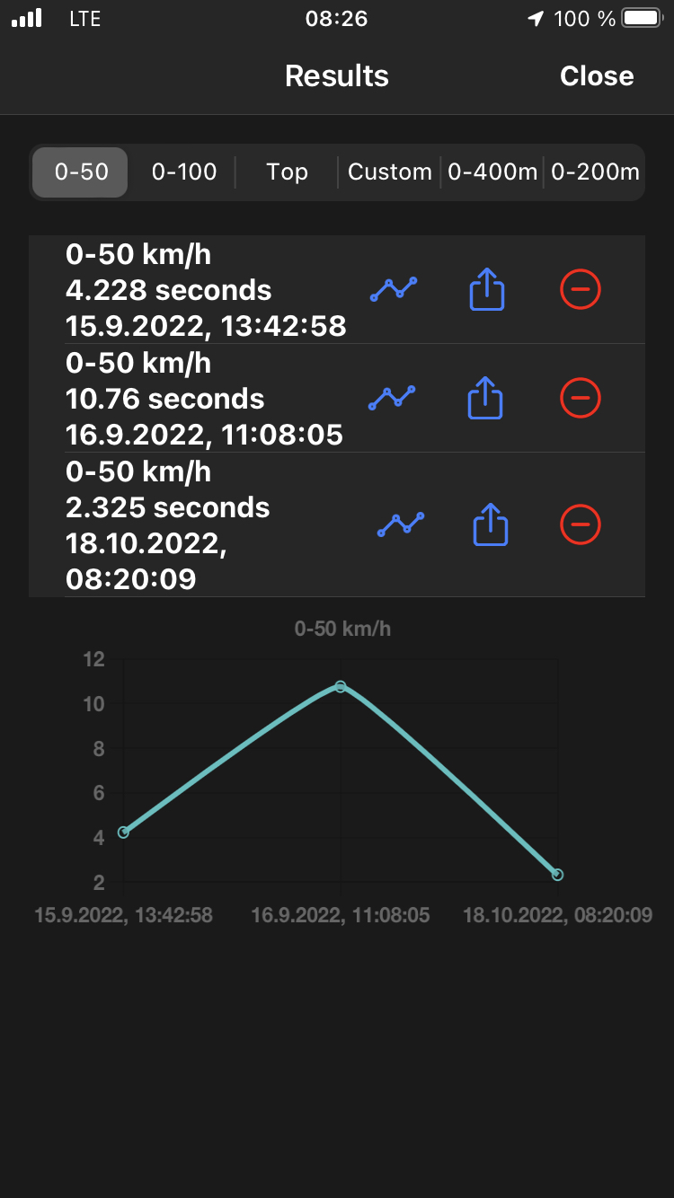 Hier mein Ergebnis 0-50km/h