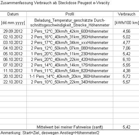 Verbrauch: siehe angehängtes Bild. Bei meinem Profil am Steckdose im Schnitt rund 5,5kWh/100km