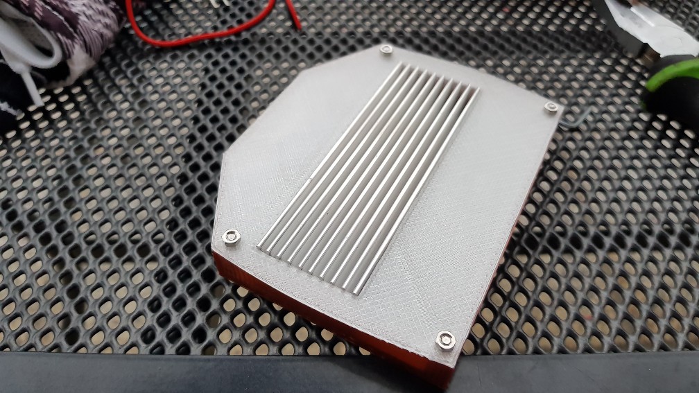 nachdem ich ein neues Lastmodul bekommen habe hab ich gleich ein neues wassergeschützes gehäuse mit passivkühlung ausgedruckt und verkabelt: